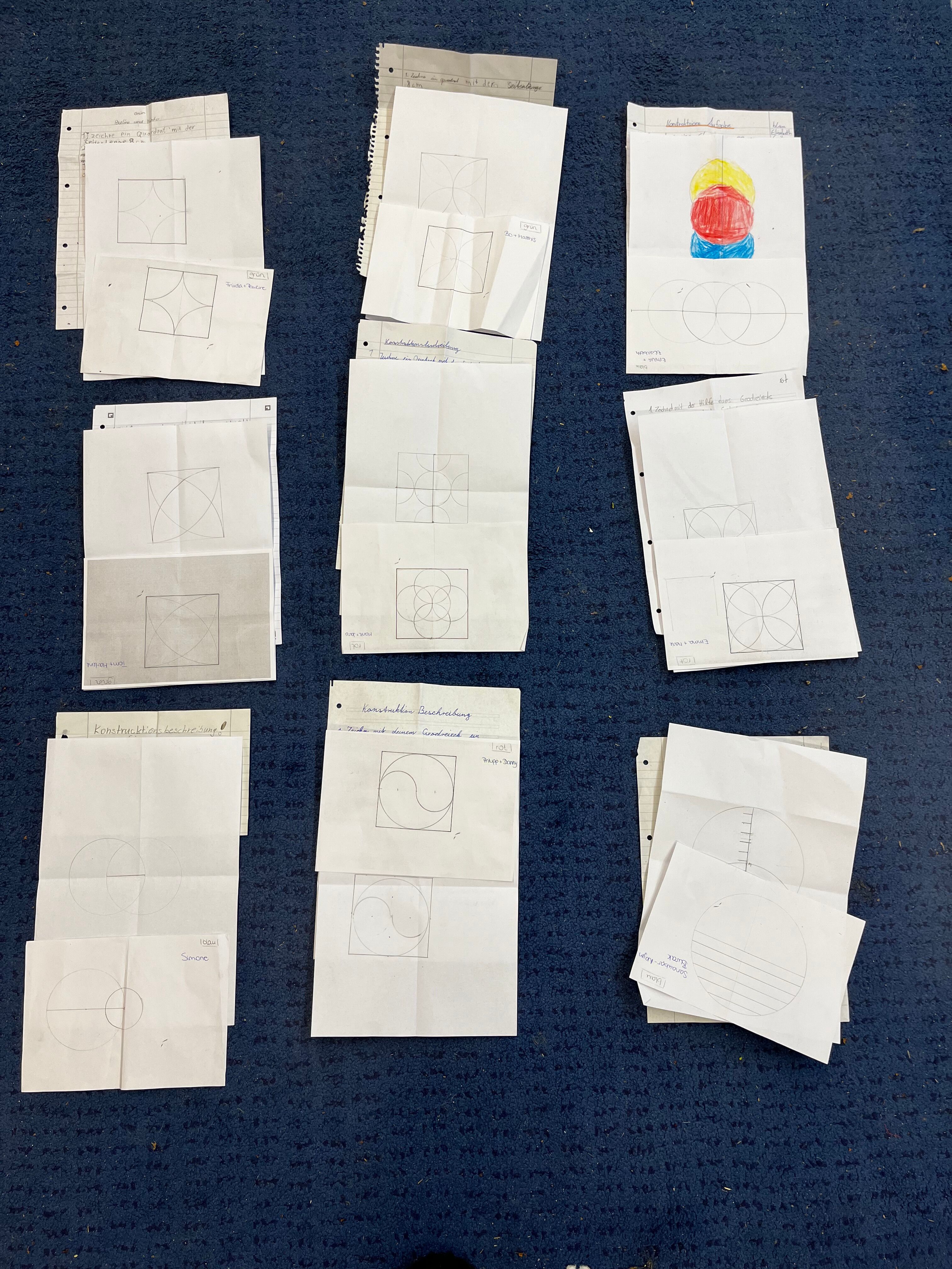 Zum Schluss haben wir uns in den Sitzkreis gesetzt und es wurden alle Konstruktionszeichnungen und auch Konstruktionsbeschreibungen in die Mitte gelegt und geraten welche Konstruktionszeichnung zu welcher Konstruktionsbeschreibung gehört.