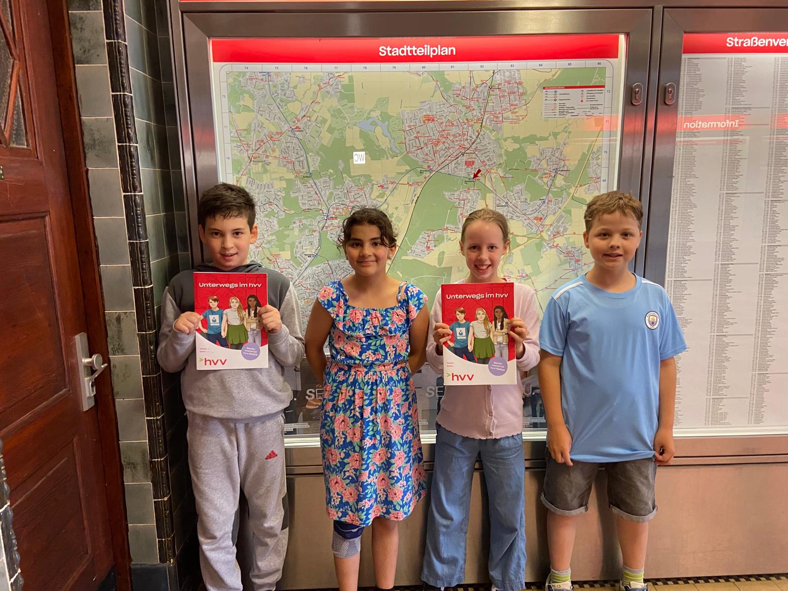 Am Donnerstag, dem 06.06.2024 fand die HVV-Rallye statt. Aber vorher haben wir uns mit unseren Sachunterrichtslehrerinnen auf die Rallye vorbereitet, in dem wir im HVV – Heft gearbeitet haben, dass wir zugeschickt bekommen hatten. Wir lernten wie man Wegweiser und Fahrpläne liest und noch viele andere Sachen.