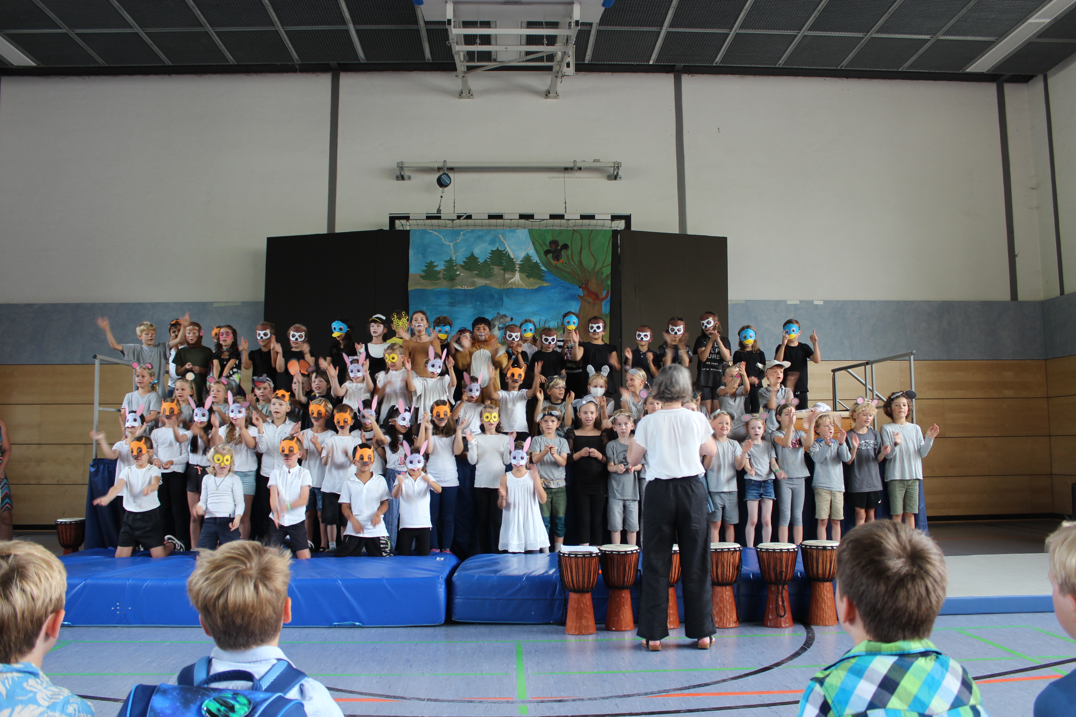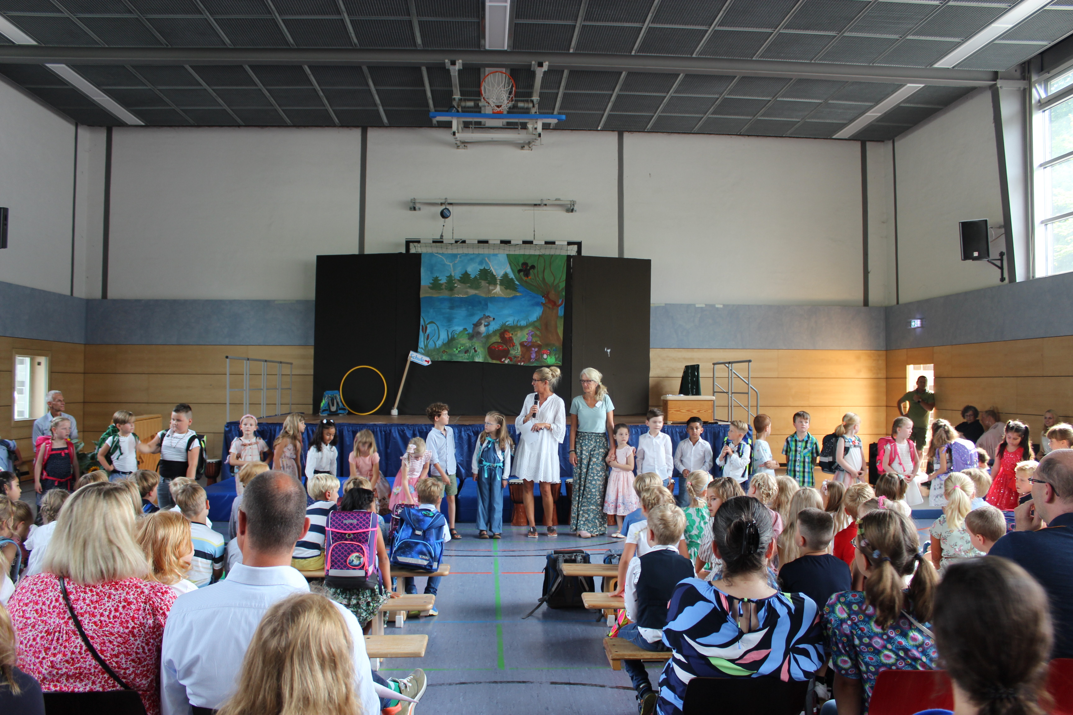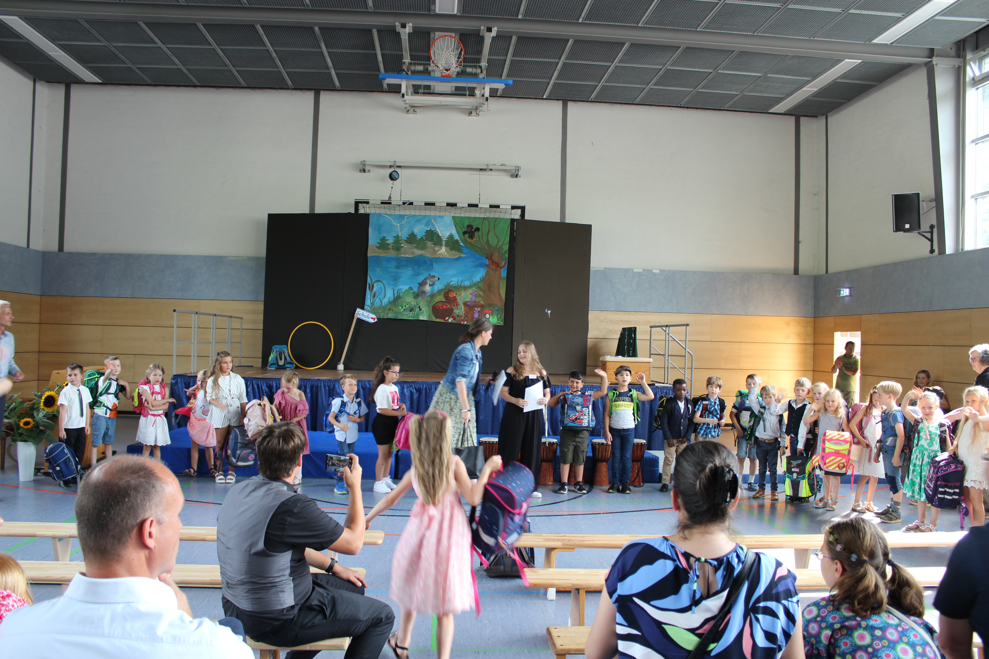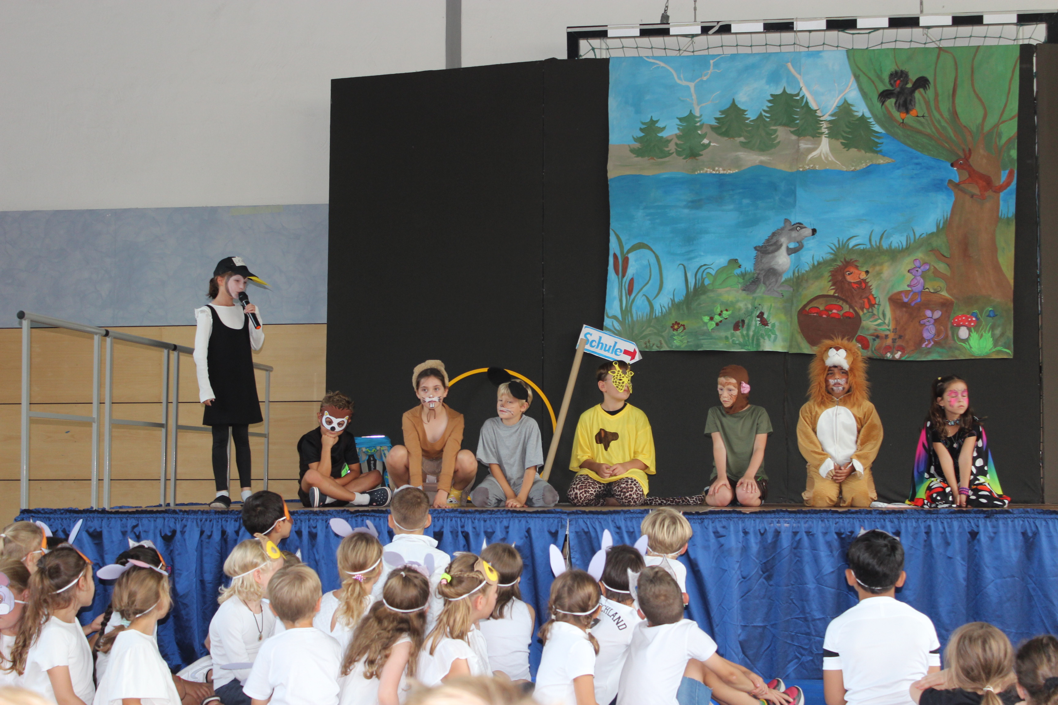 Die 2. Klässler begrüßten die Kinder und Eltern mit einem bunten Programm von einem Tier-ABC bis zu freundschaftlichen Begegnungen des Löwen mit anderen Tieren zu Beginn der Schulzeit.