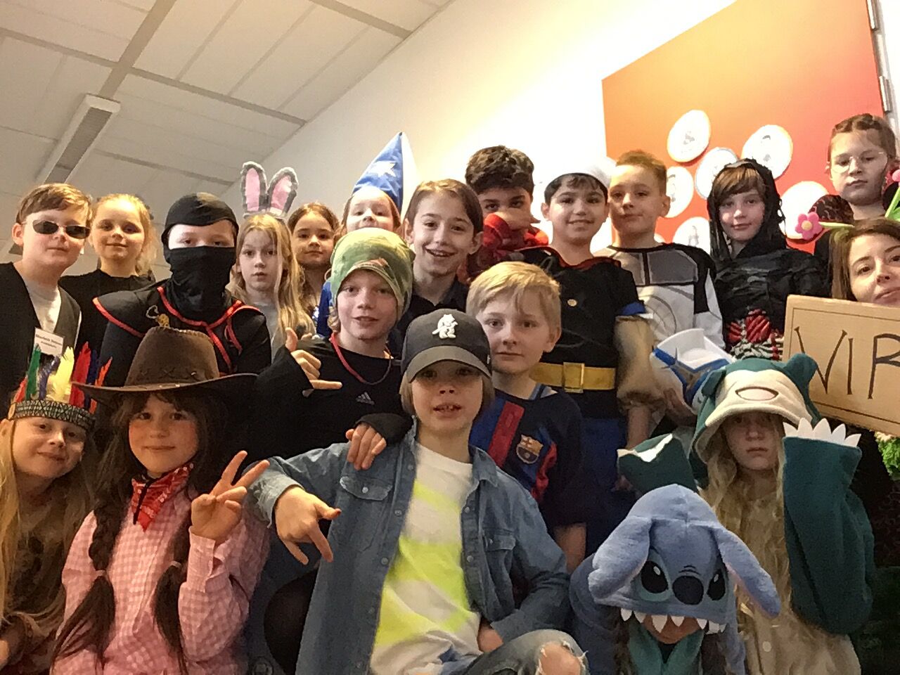 In der OGS hatte sich Thorsten als Tamara verkleidet, dafür hat er die Kleider seiner Freundin genommen. Er sah lustig aus. Es gab eine Nebelmaschine in der Turnhalle und die Disco war cool. In der Cafeteria gab es Pizza und Frikadellen. Am Abend hatte ich Husten, trotzdem war der Tag perfekt.