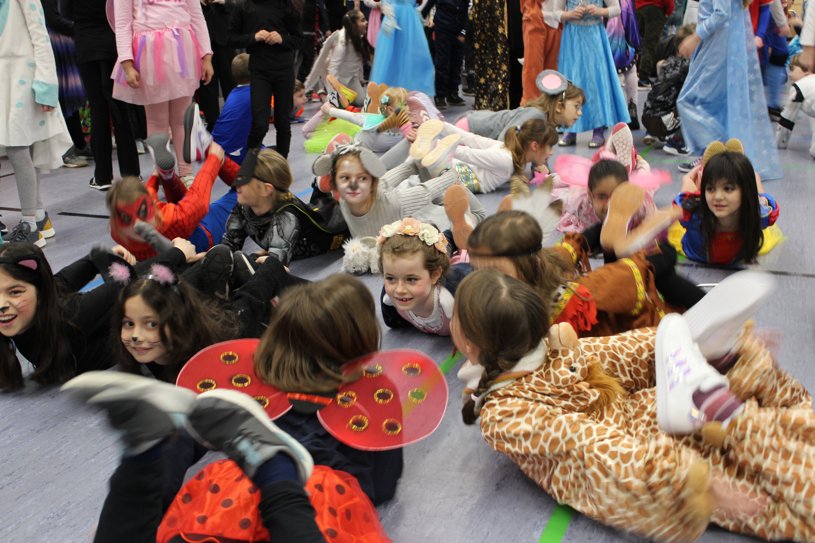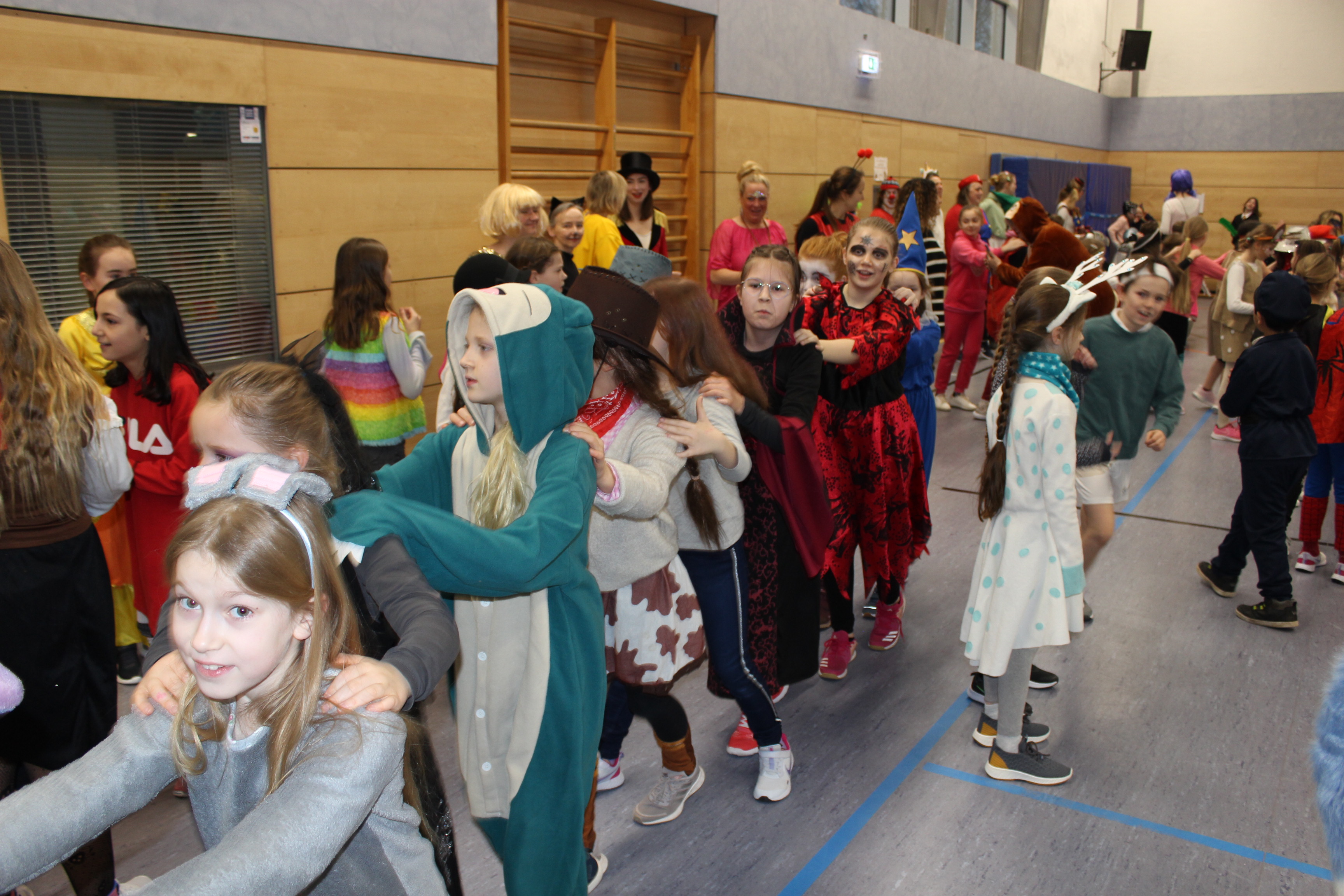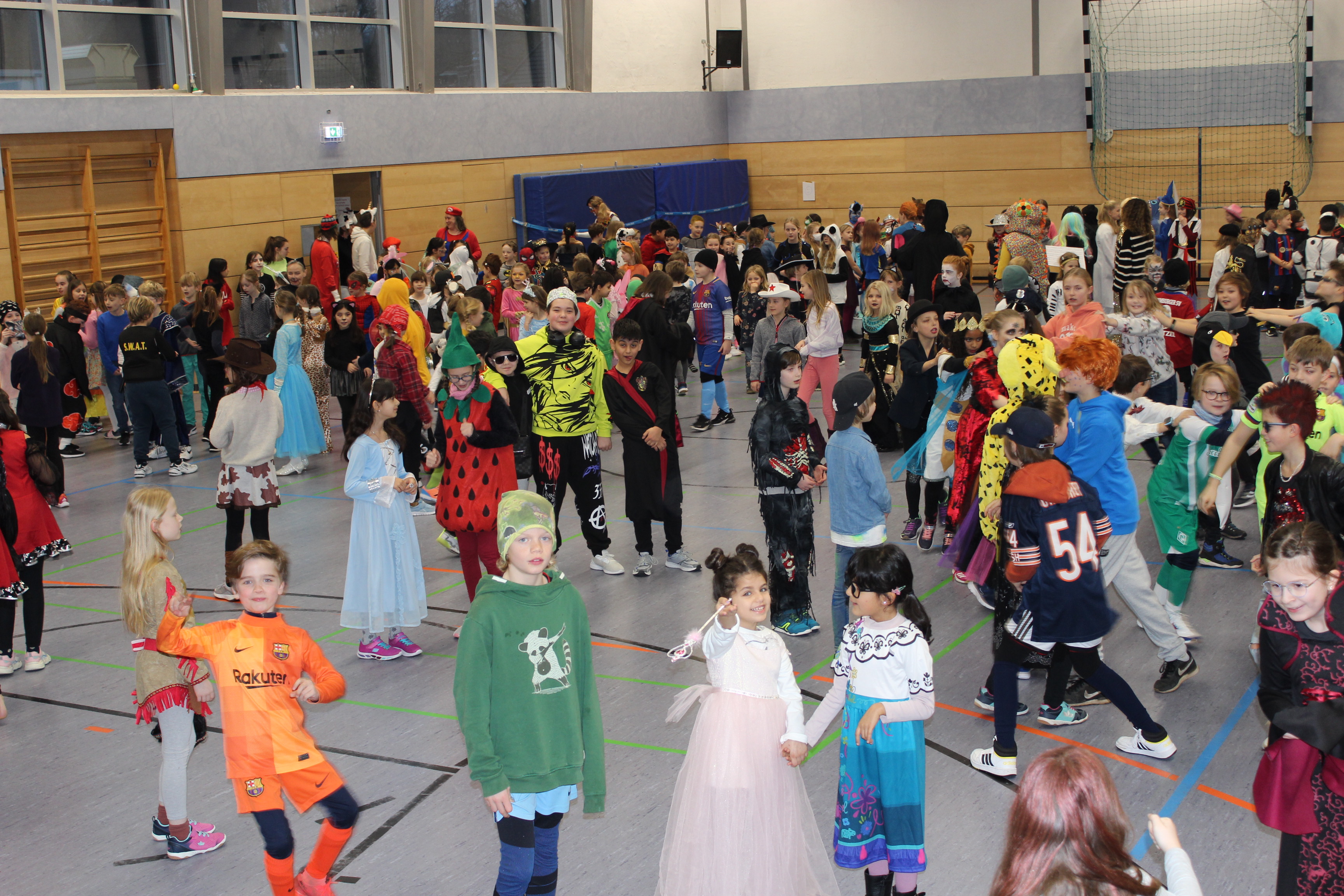 Es ging um 8 Uhr los. Wir sind alle in die Turnhalle gegangen, um dort zu tanzen. Und dann hat die ganze Schule eine Polonaise durch die ganze Schule gemacht. An allen Klassenräumen vorbei. An unserer Klasse sind wir aus der Polonaise ausgestiegen. Nun haben wir Spiele gespielt und das Büffet war auch sehr lecker. Wir haben mein rechter, rechter Platz ist leer mit falschen Namen und die Reise nach Jerusalem gespielt. Dann sind wir noch einmal in die Turnhalle gegangen, dort gab es eine Bewegungslandschaft. Später sind wir noch einmal raus gegangen und dann geht auch so ein schöner Tag auch mal zu Ende.