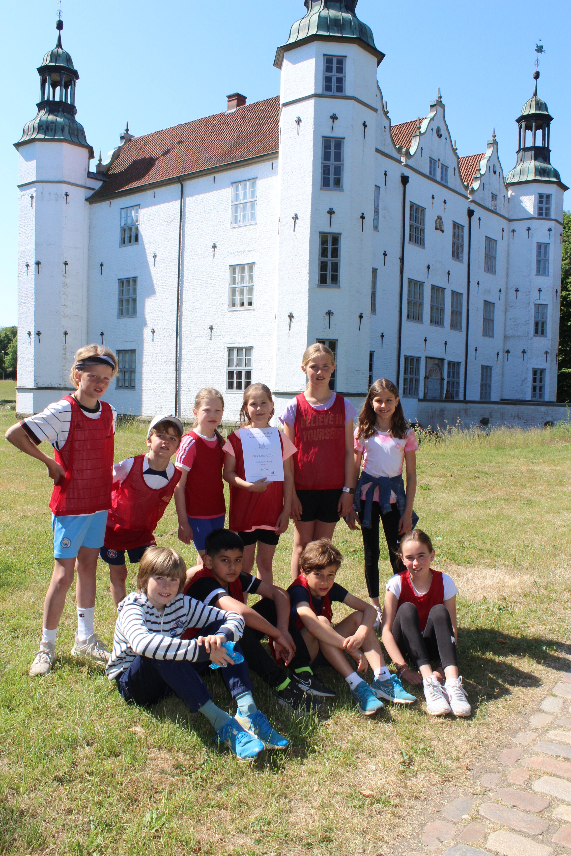 Am 7. Juni 2023 wurde zum 19. Mal der Schlosscross, ein Lauf um das Ahrensburger Schloss, als Staffellauf für Schulen ausgetragen. Acht Schülerinnen und Schüler liefen bei sehr warmen Temperaturen in einer Staffel nacheinander über eine Strecke von 1150 m. Die Staffel der Aalfangschule mit Sophie, Emilia, Emma und Emmy-Louise, sowie Moritz, Shervin, Jesper und Till (Ersatzläufer Luisa und Aurel) schlug sich mit Platz 10 unter 13 Grundschulmannschaften tapfer, hatte aber mit der Entscheidung nichts zu tun. Der Sieg ging klar an die Grundschule Tangstedt. Das Eis auf dem Rückweg hatten sich alle wohlverdient.