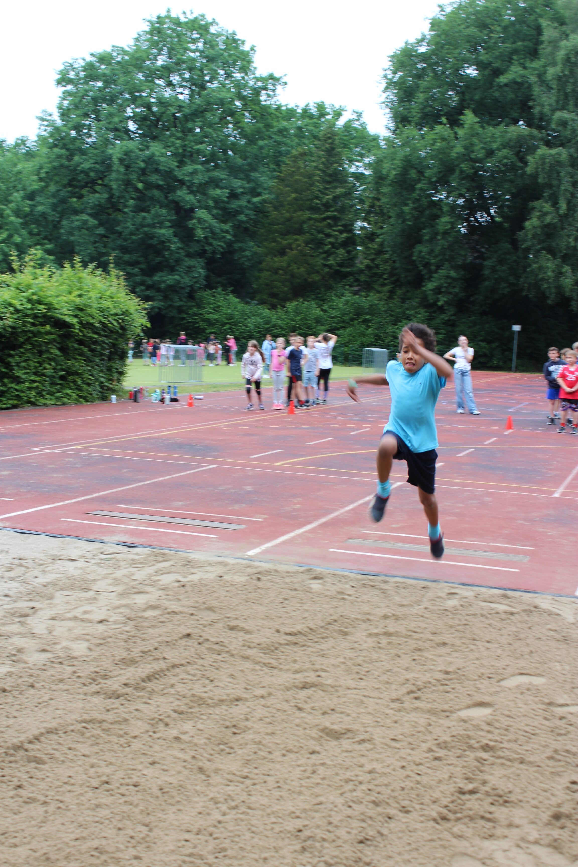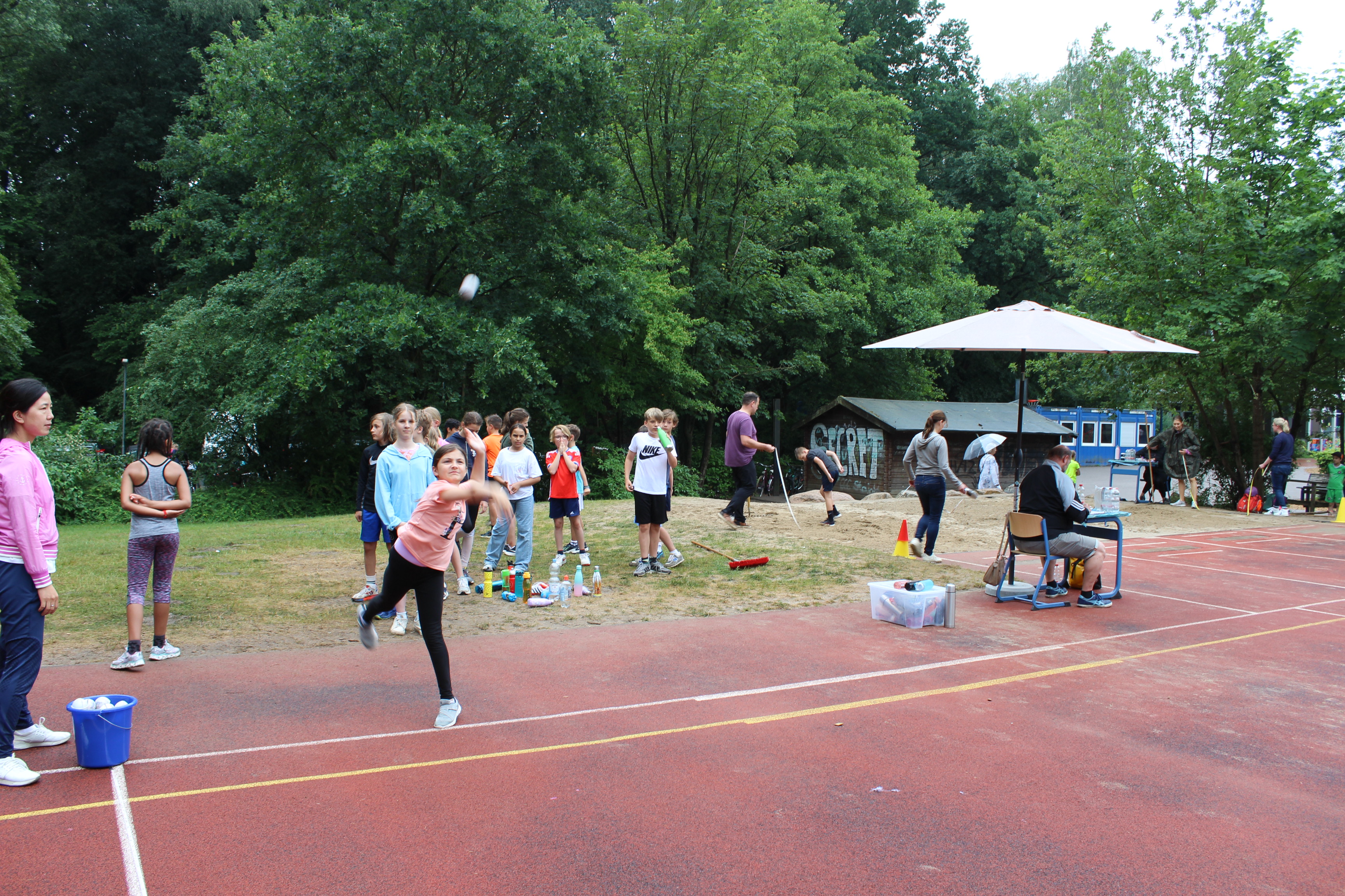 Es wurde mit Ehrgeiz und Begeisterung gesprintet, geworfen und gesprungen und mit Teamgeist und Spaß gespielt. Gegenseitige Anfeuerungen konnte man über das ganze Schulgelände hören. Sogar das Wetter spielte mit. Nachdem es viele Tage bereits sehr warm war, kühlten sich die Temperaturen angenehm ab und die wenigen Regentropfen störten nicht.