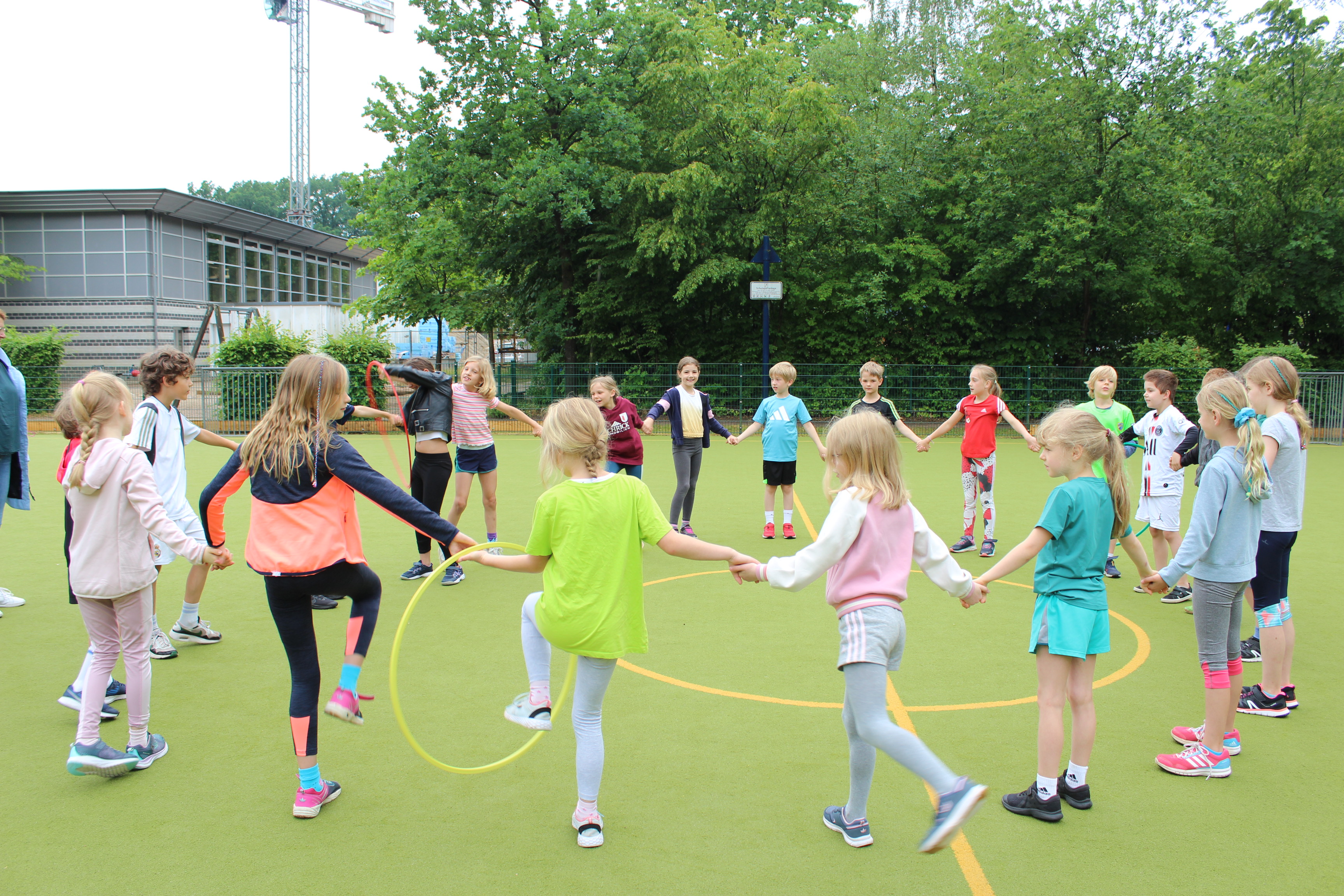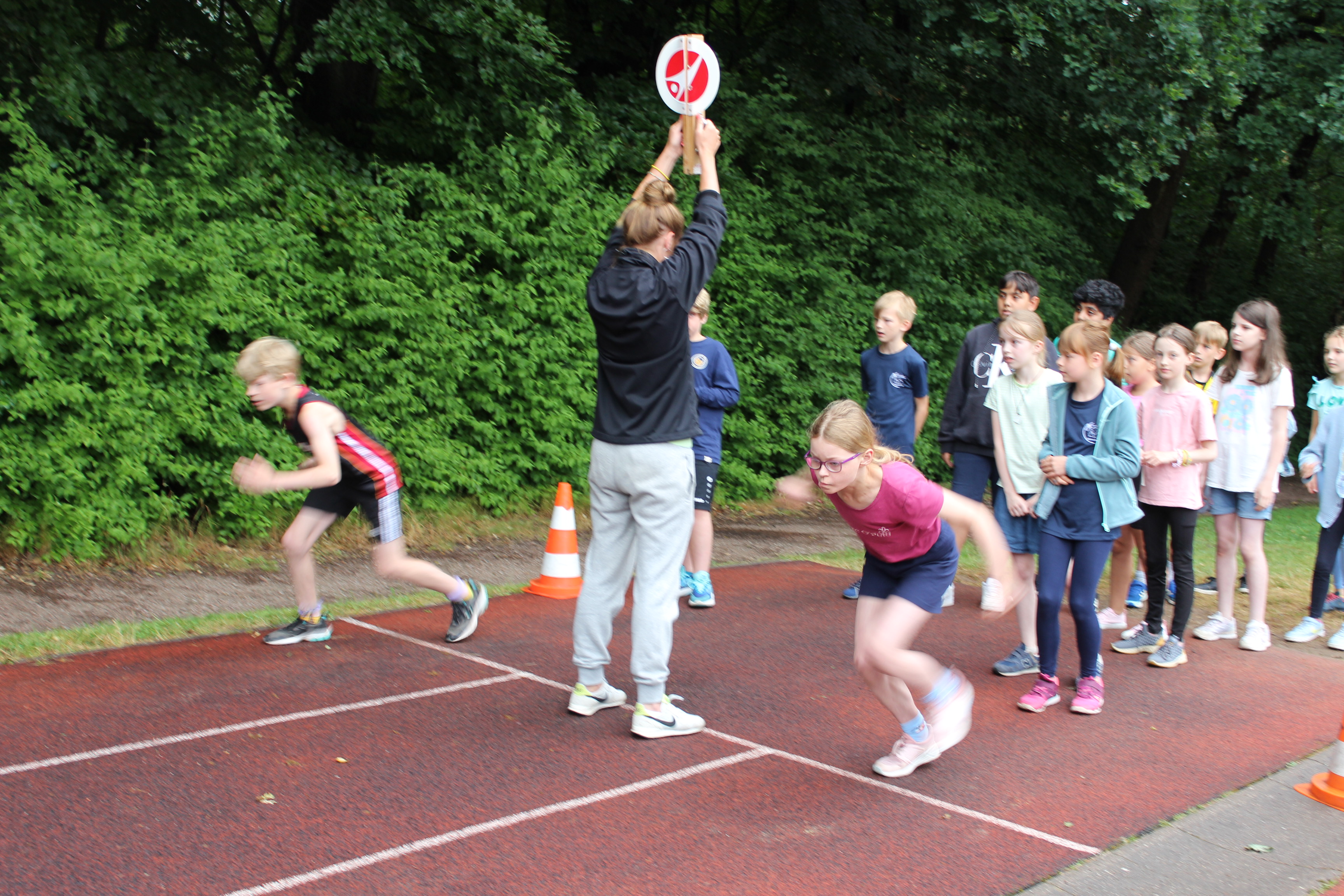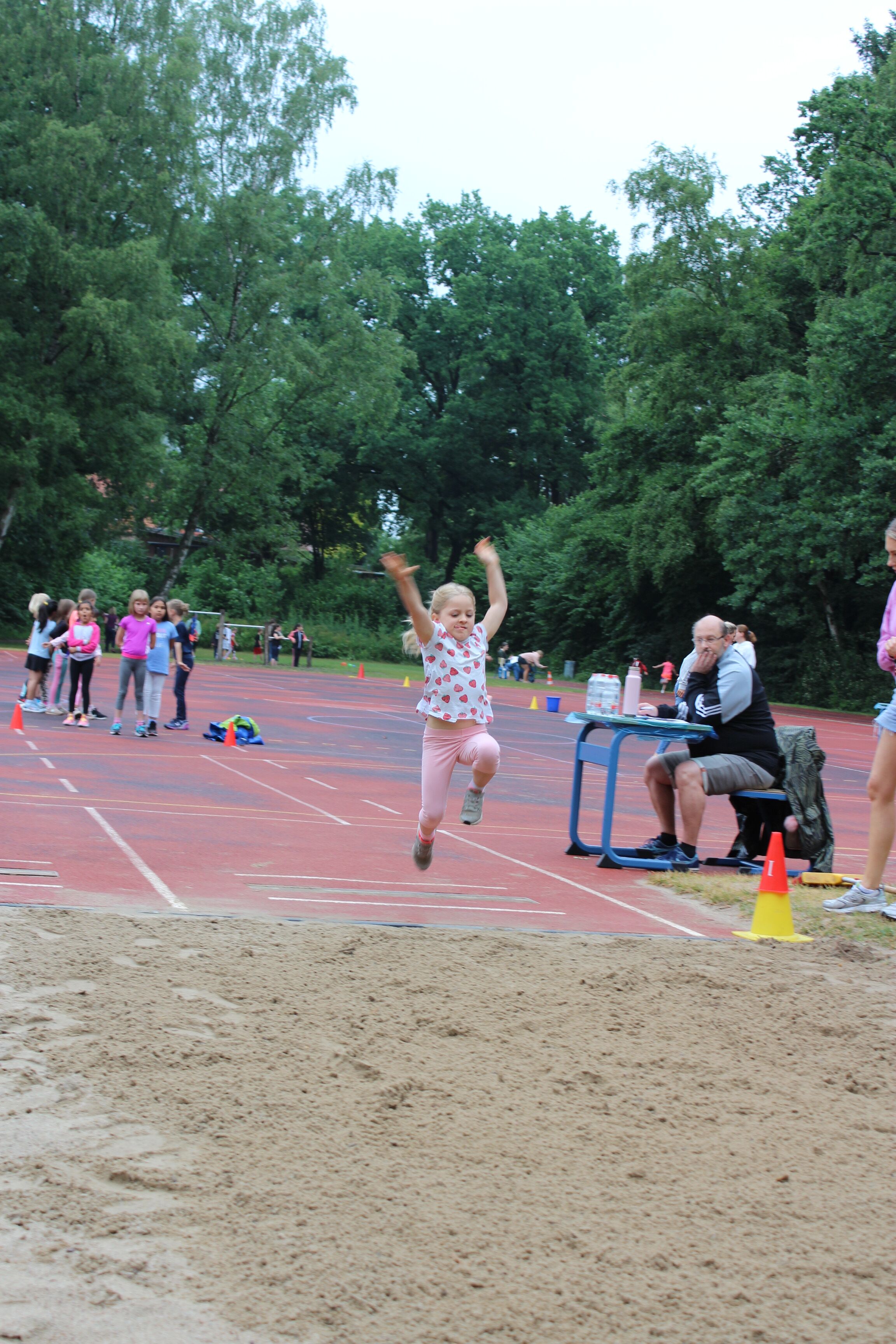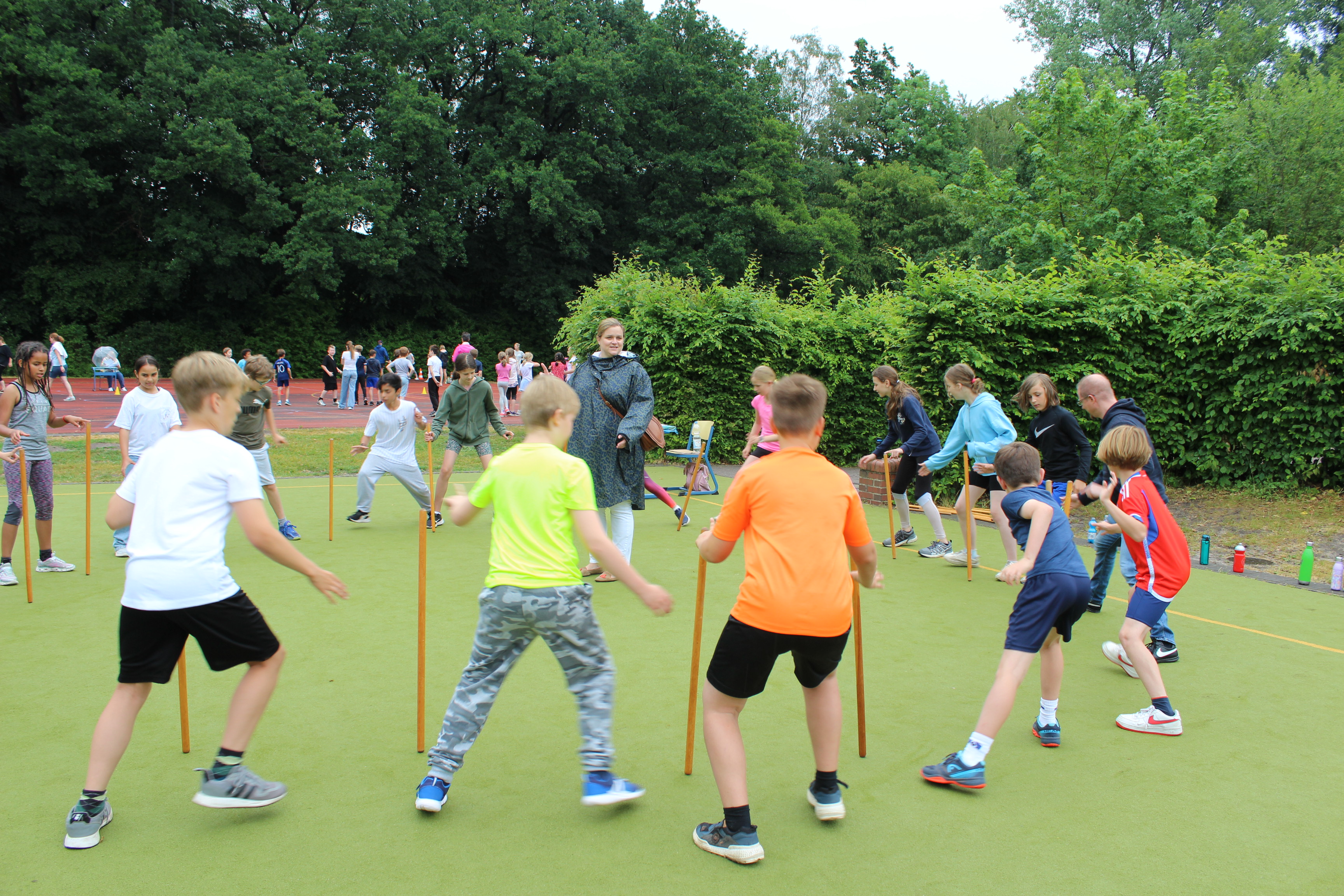 Den Auftakt bildete der 800m-Lauf (2 Runden um den Aalfangteich) am Vortag (Donnerstag). Am Freitag dann durchliefen alle Klassen die drei Wettbewerbe 50m Lauf, Schlagballwurf und Weitsprung, sowie eine Auswahl von sieben Spielstationen.