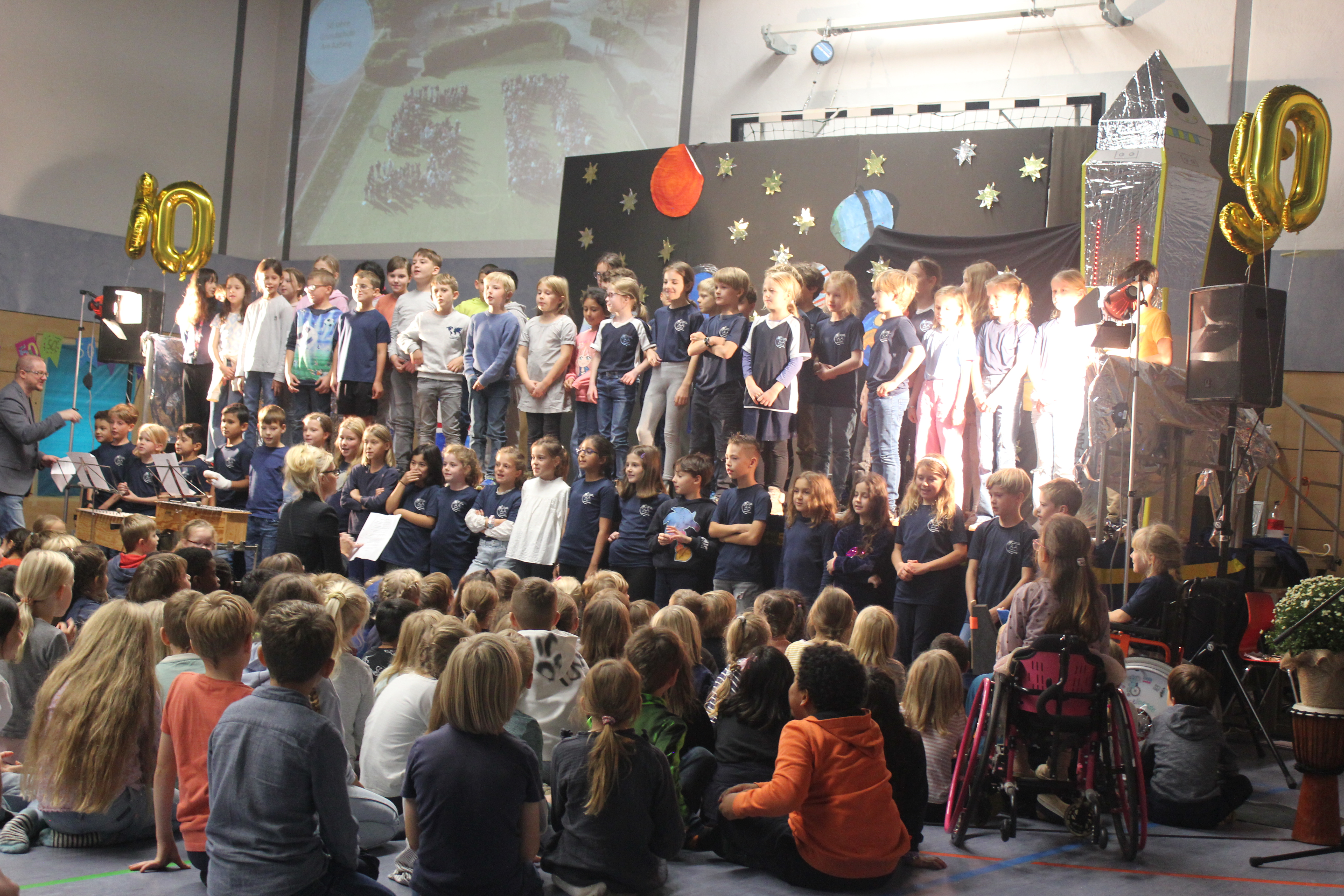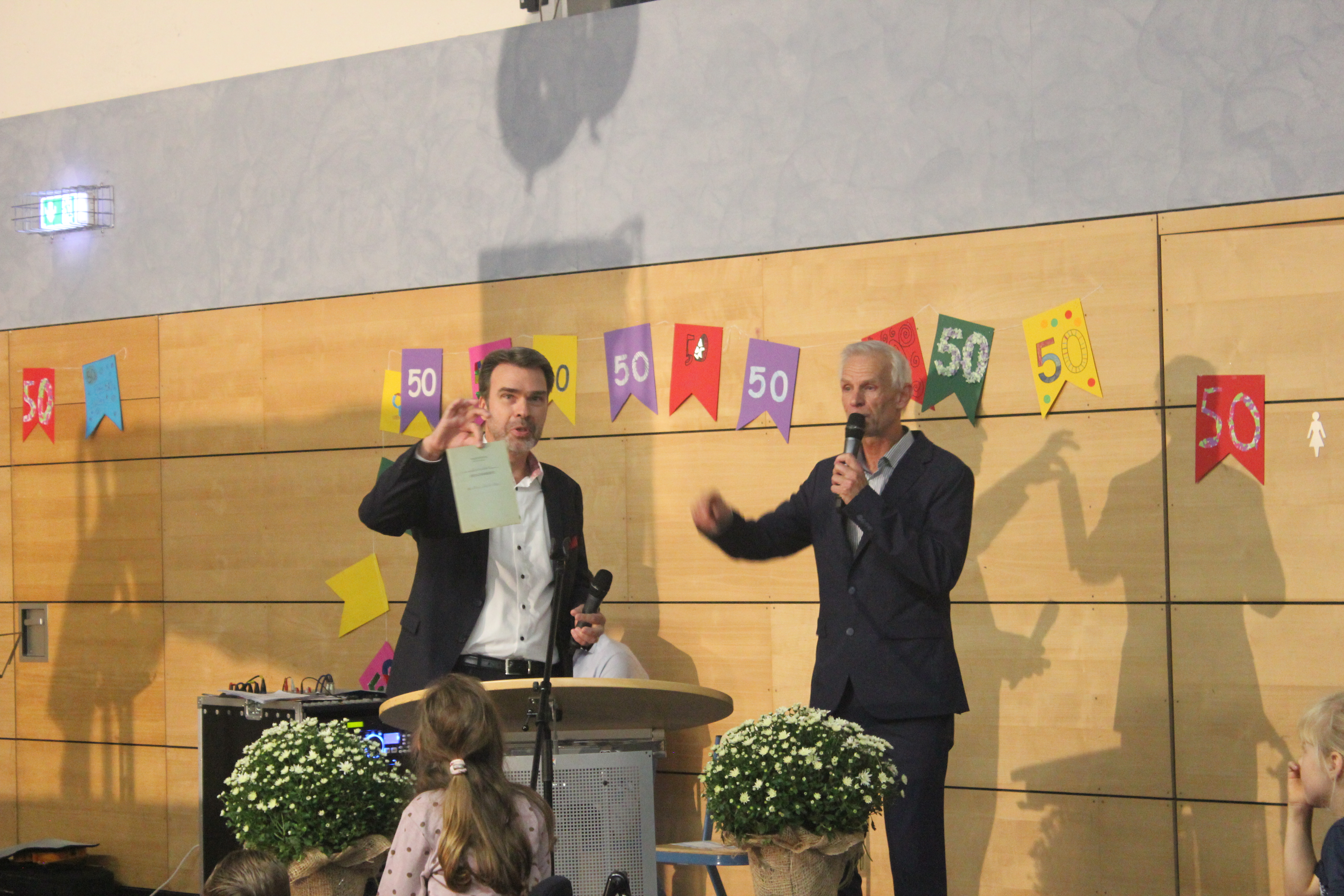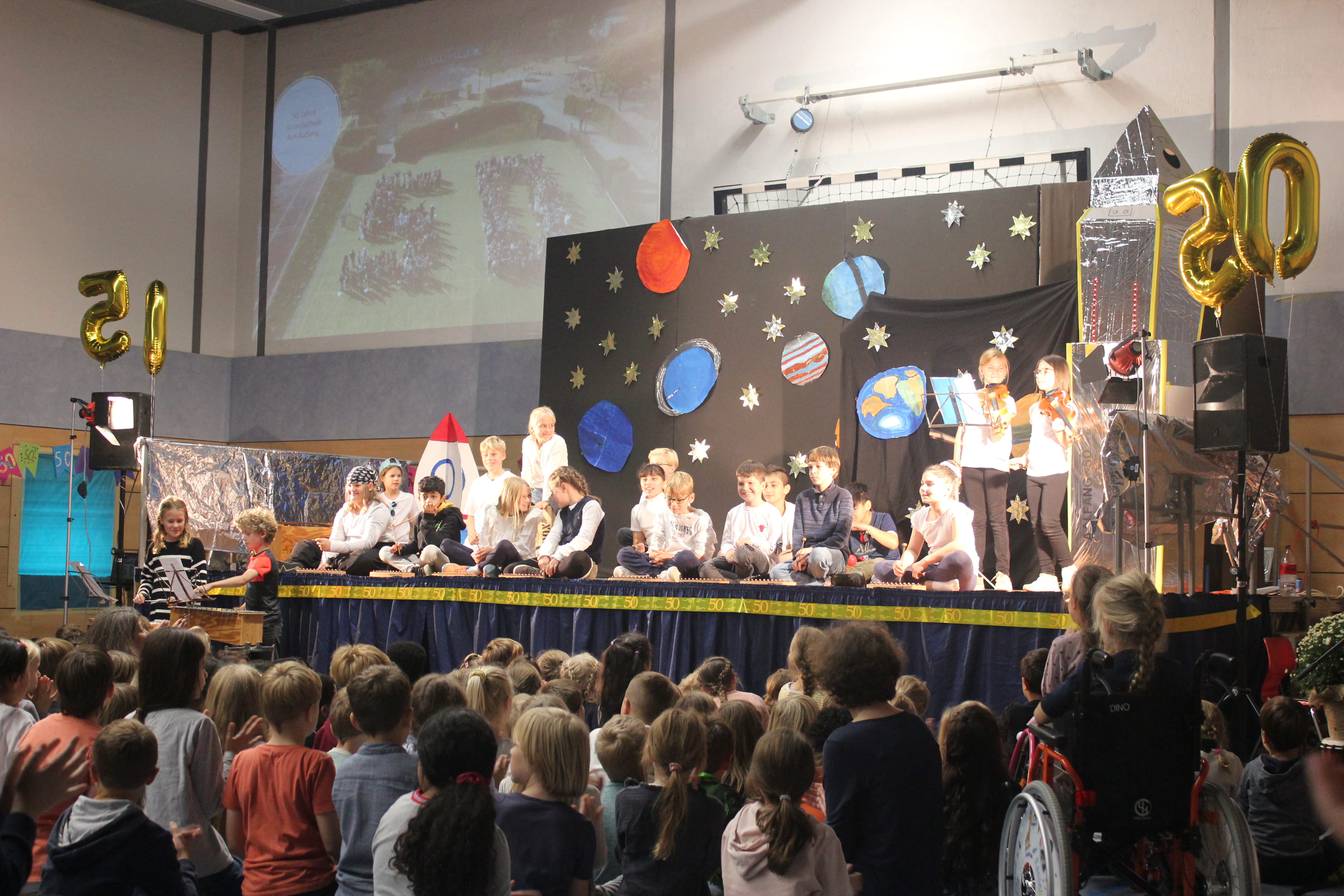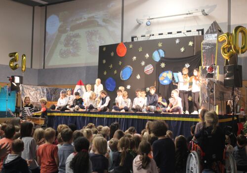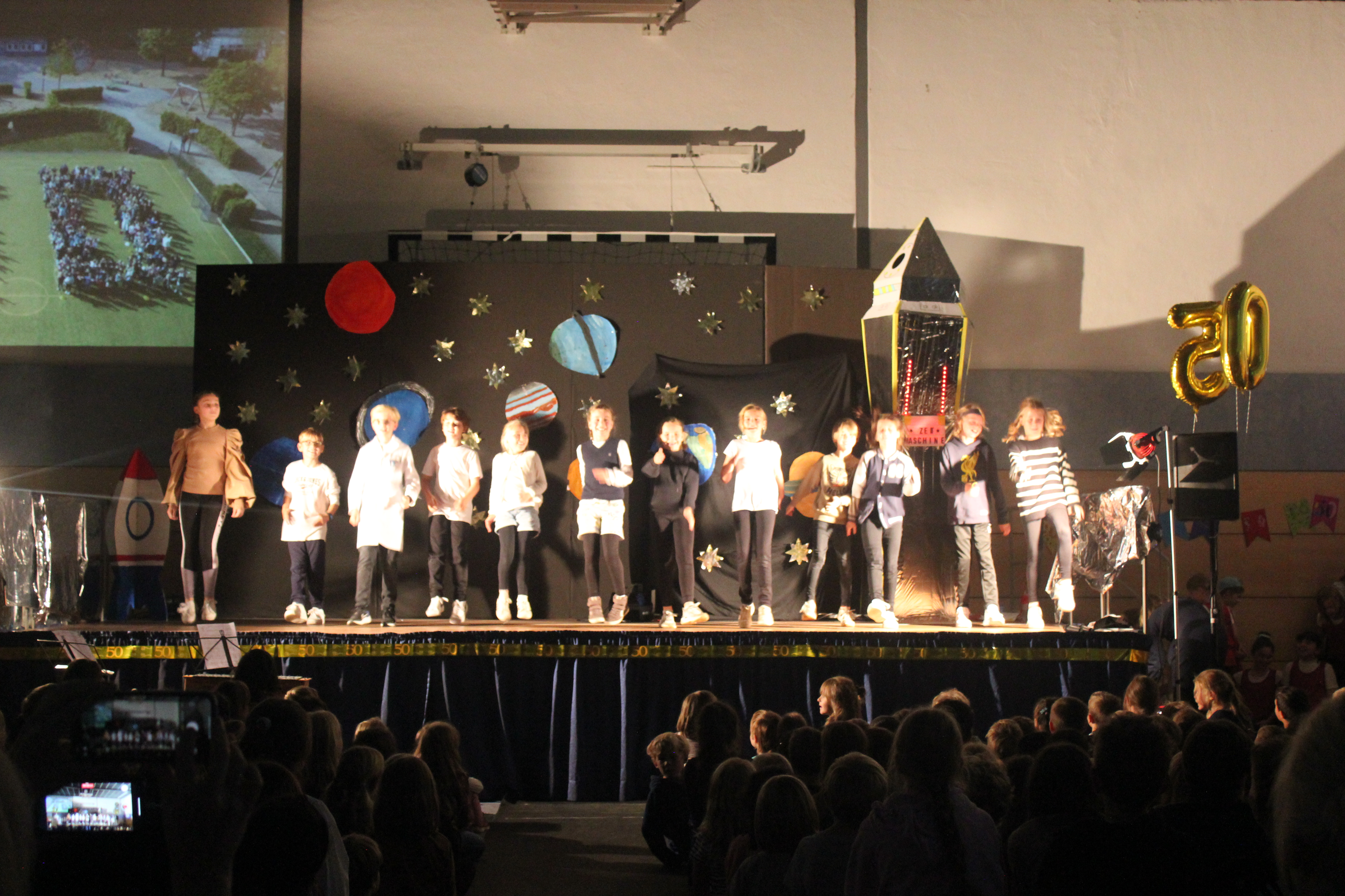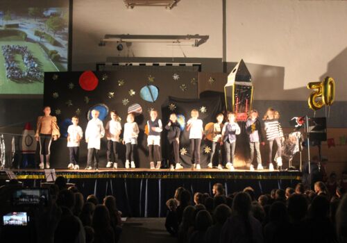 In einer festlichen Aufführung wurden bei einer Zeitreise die vergangenen 50 Jahre beleuchtet. So erfuhren die Gäste, dass auch die Sesamstraße und das Handy in diesem Jahr 50 Jahre alt wurden (siehe Extrabeitrag). Die Turnhalle übrigens wurde genau vor 25 Jahren errichtet.