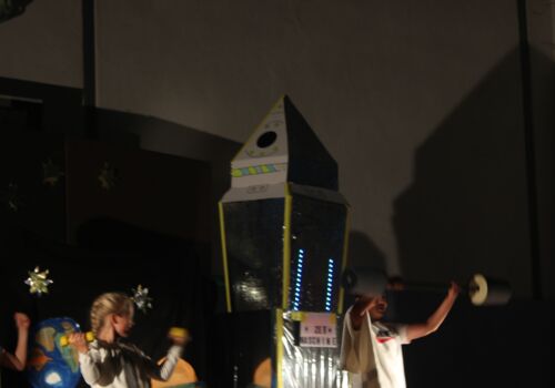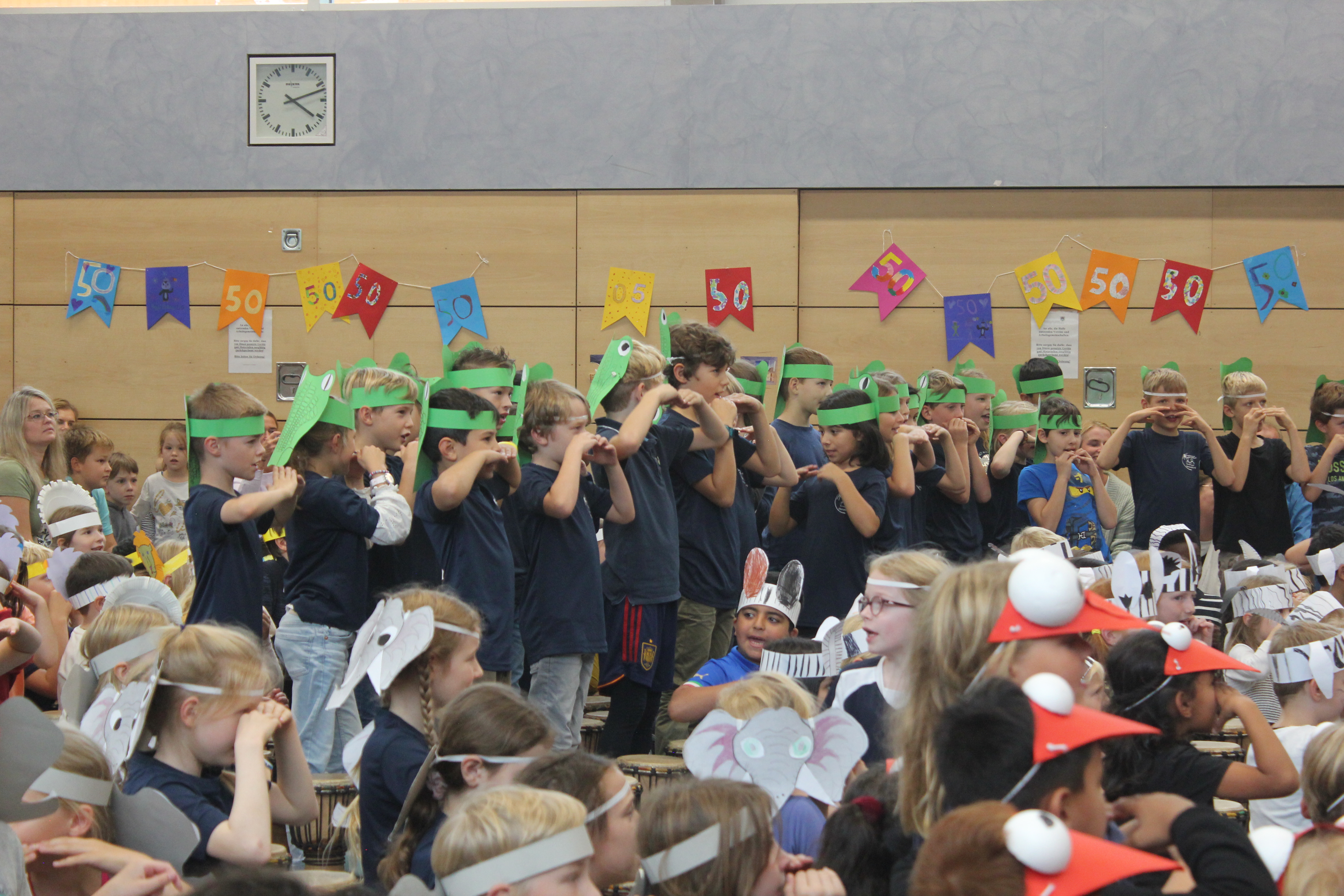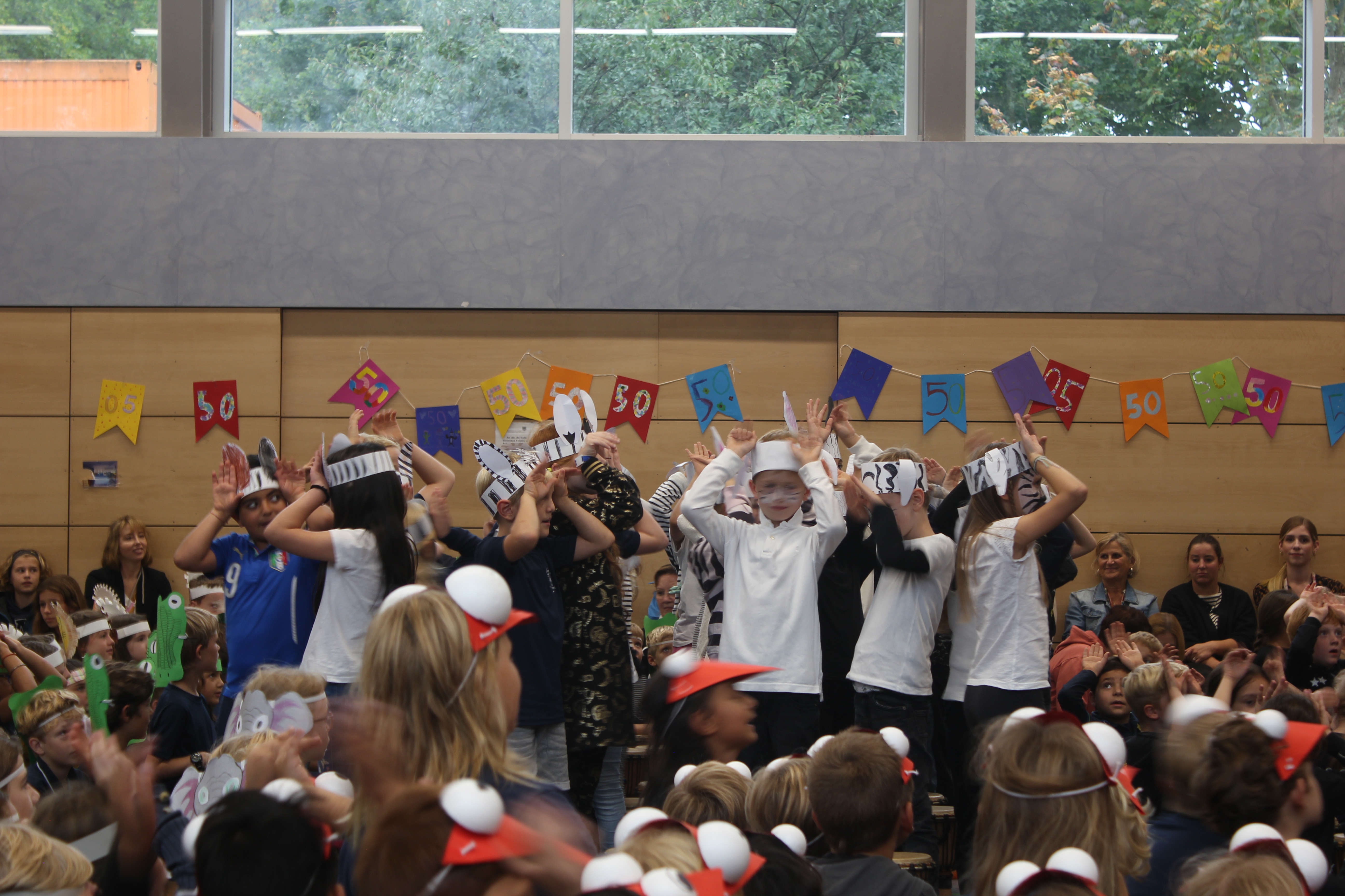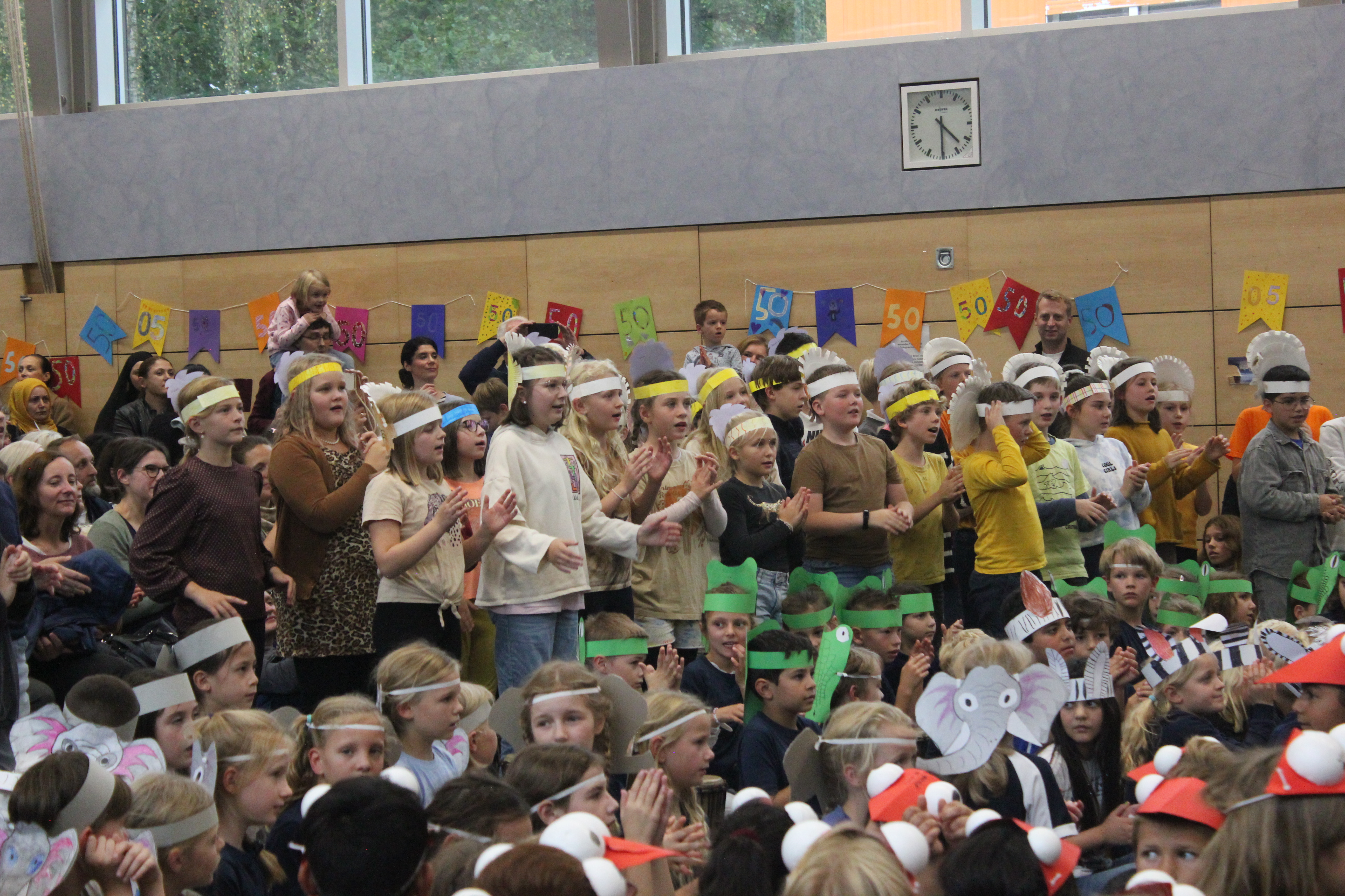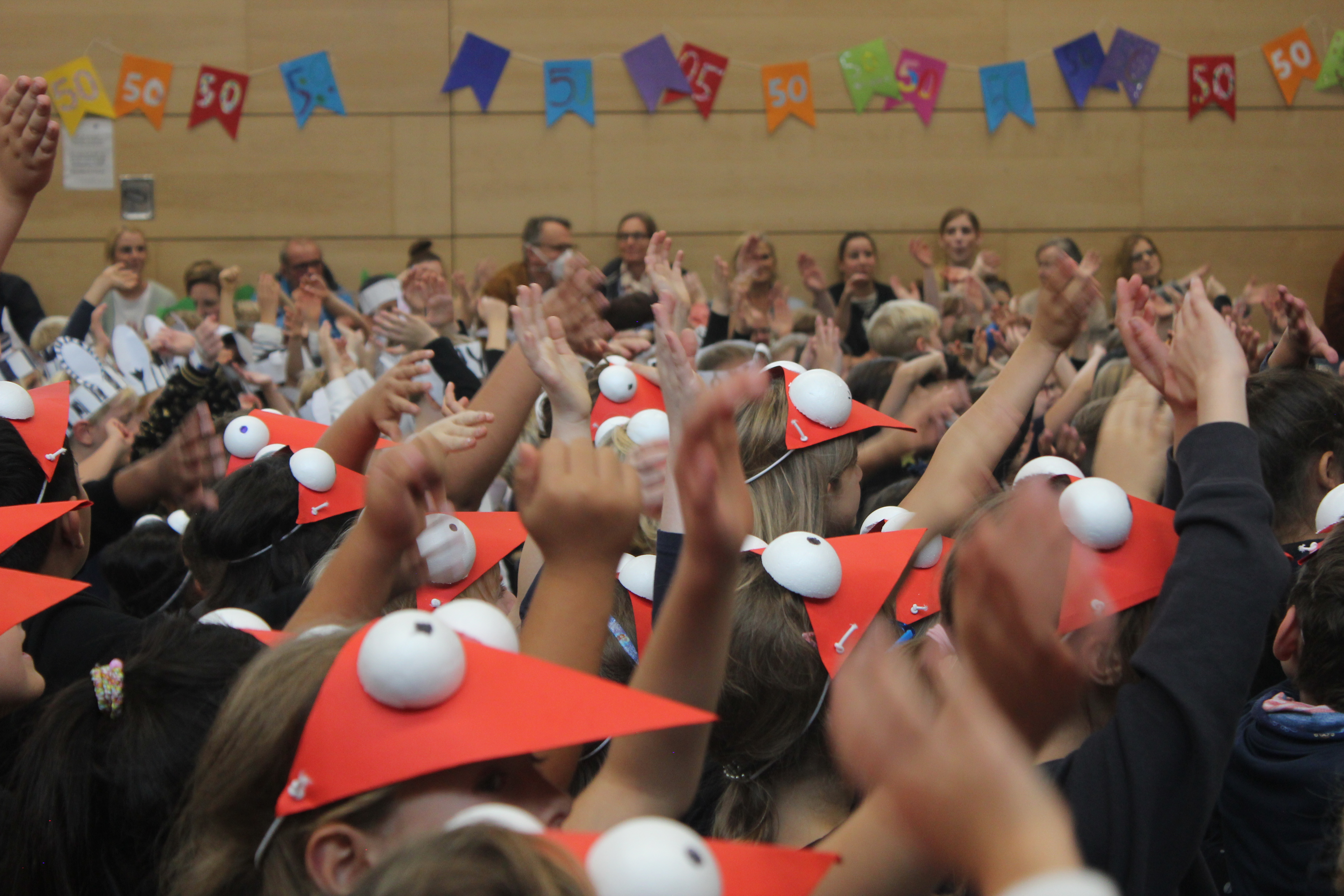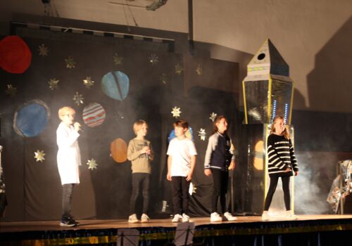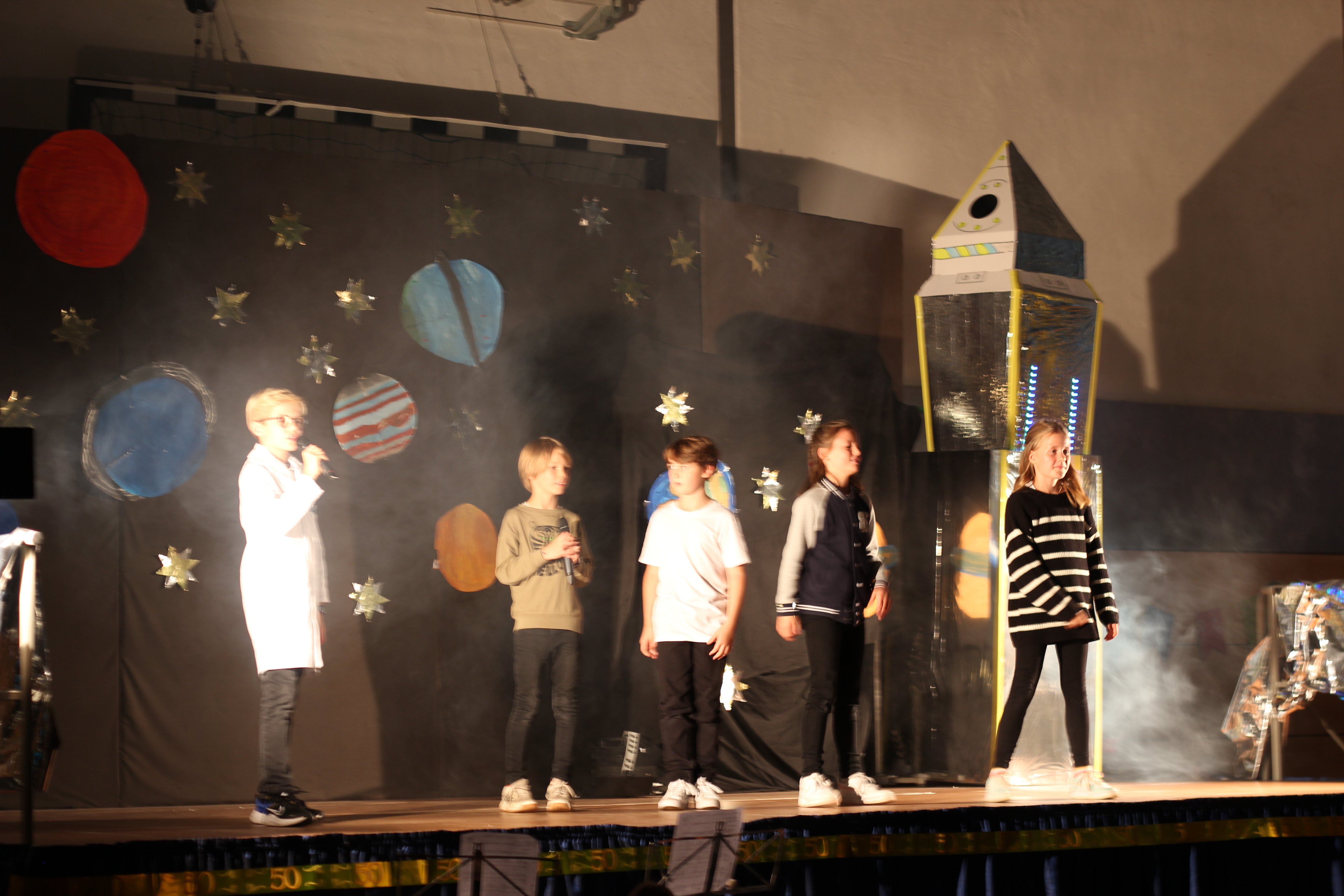 In einer festlichen Aufführung wurden bei einer Zeitreise die vergangenen 50 Jahre beleuchtet. So erfuhren die Gäste, dass auch die Sesamstraße und das Handy in diesem Jahr 50 Jahre alt wurden (siehe Extrabeitrag). Die Turnhalle übrigens wurde genau vor 25 Jahren errichtet.