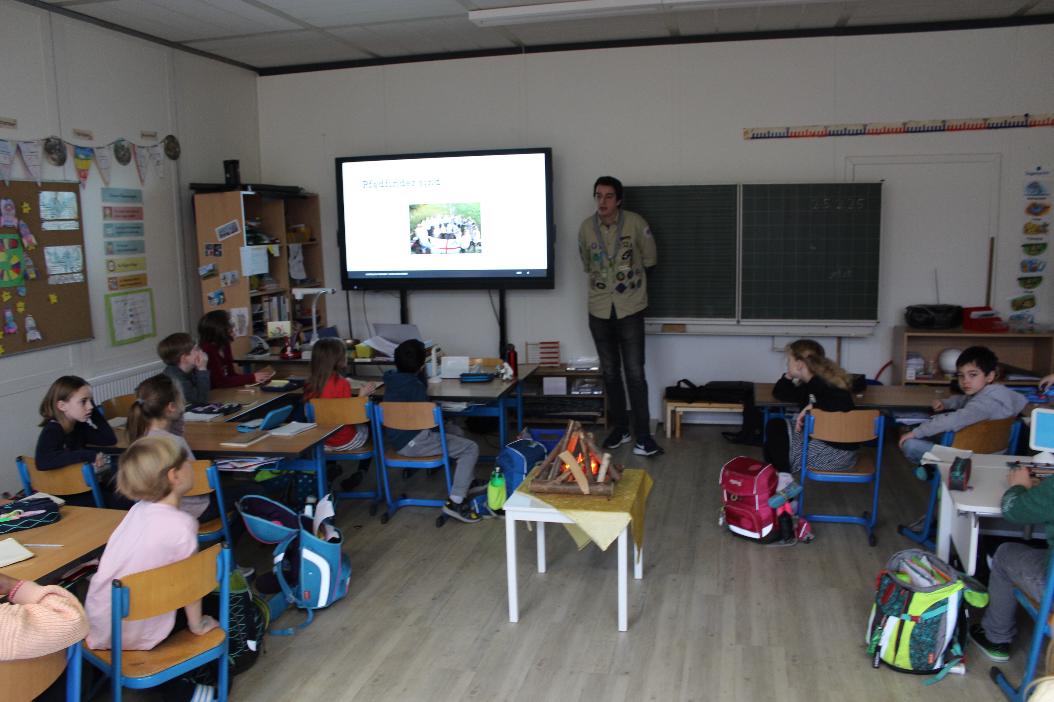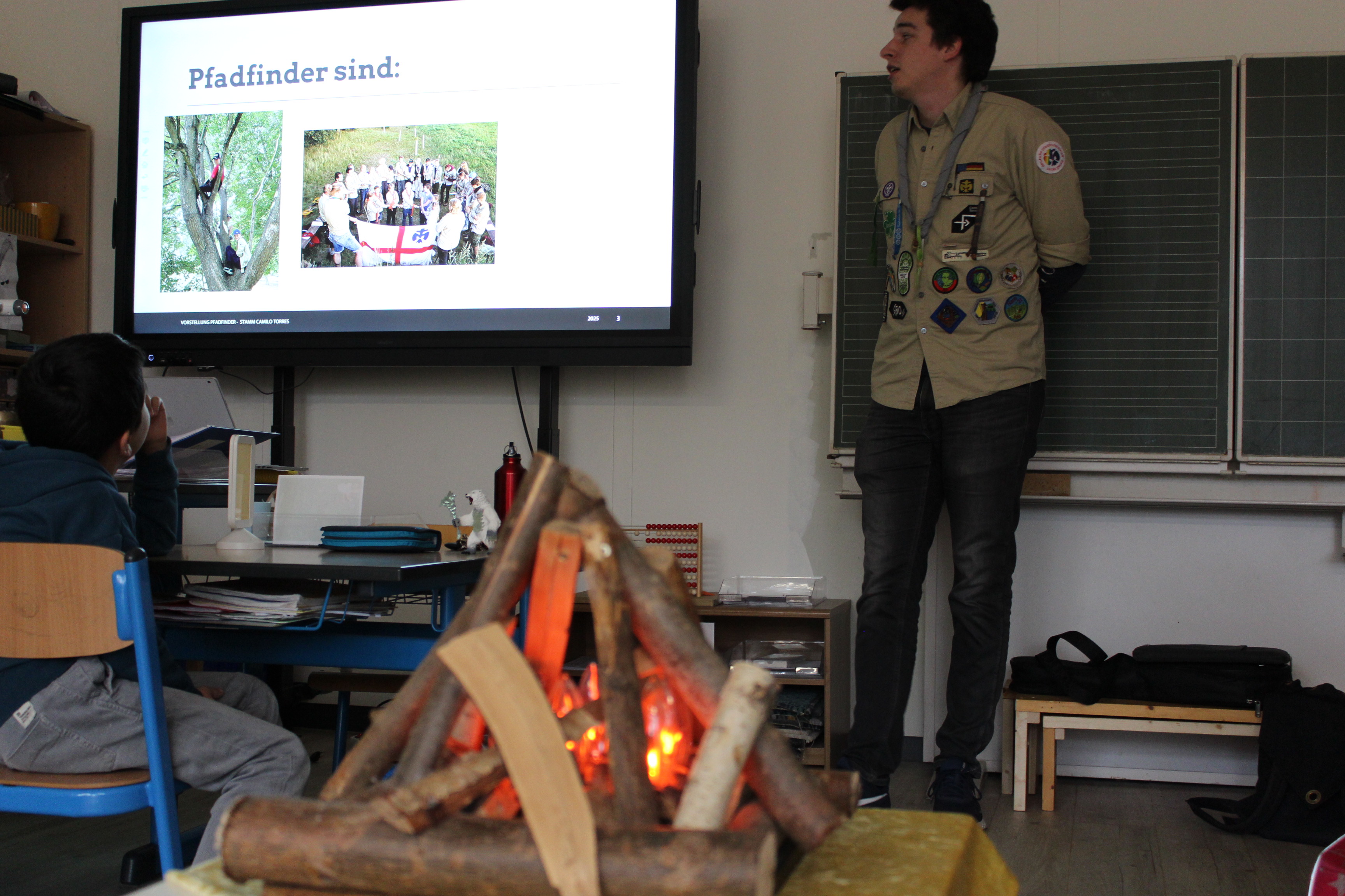 Traditionell stellt einmal im Jahr eine Pfandfindergemeinschaft aus Ahrensburg ihre Arbeit an unserer Schule vor. Jonas Wagner vom Stamm Camilo Torres berichtete am 25. Februar 2025 den Schülerinnen und Schülern der 2. und 3. Klassen von Erlebnissen, Aktivitäten, Ferienfahrten und zeigte Gegenstände, die zur Ausrüstung eines Pfadfinders gehören.