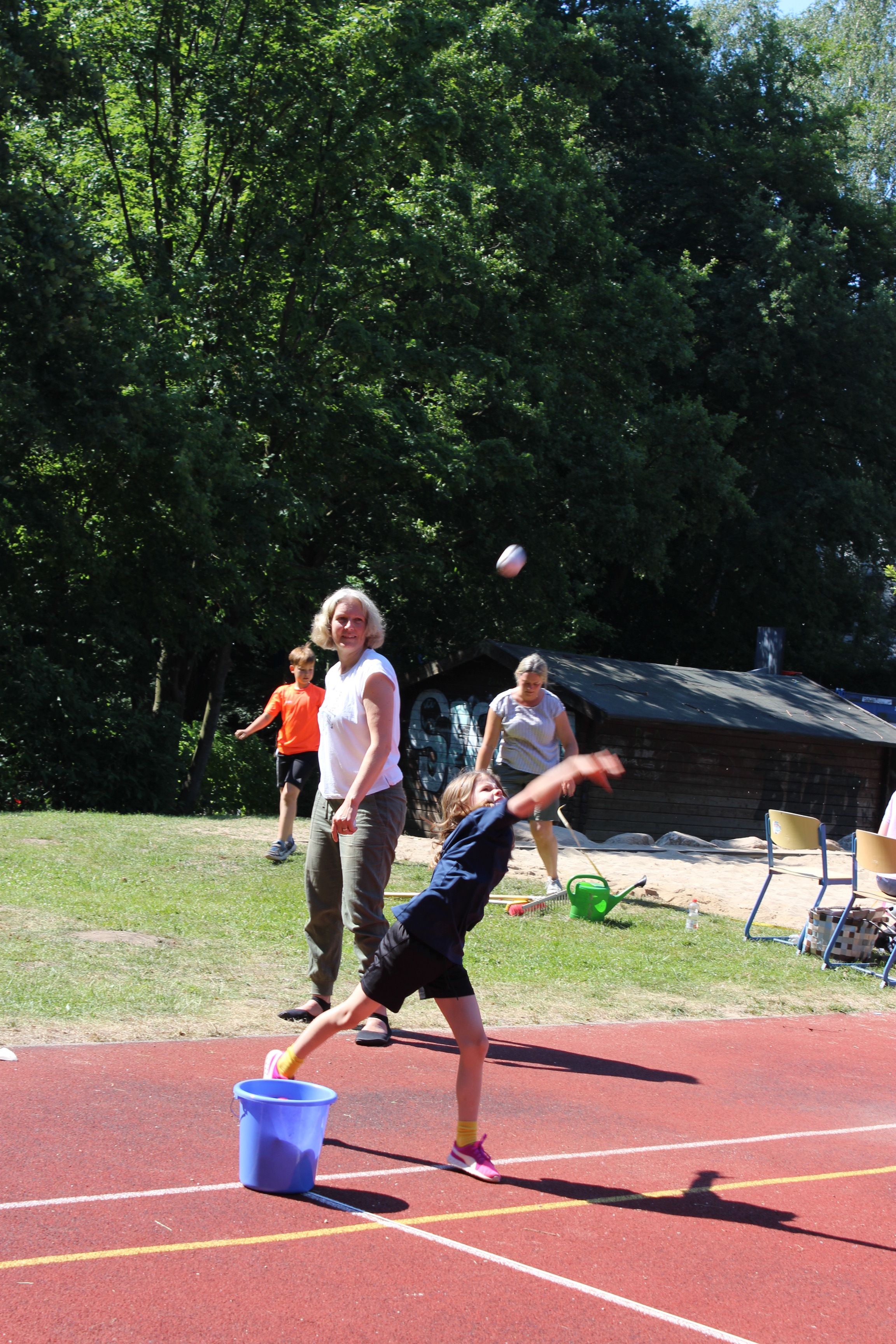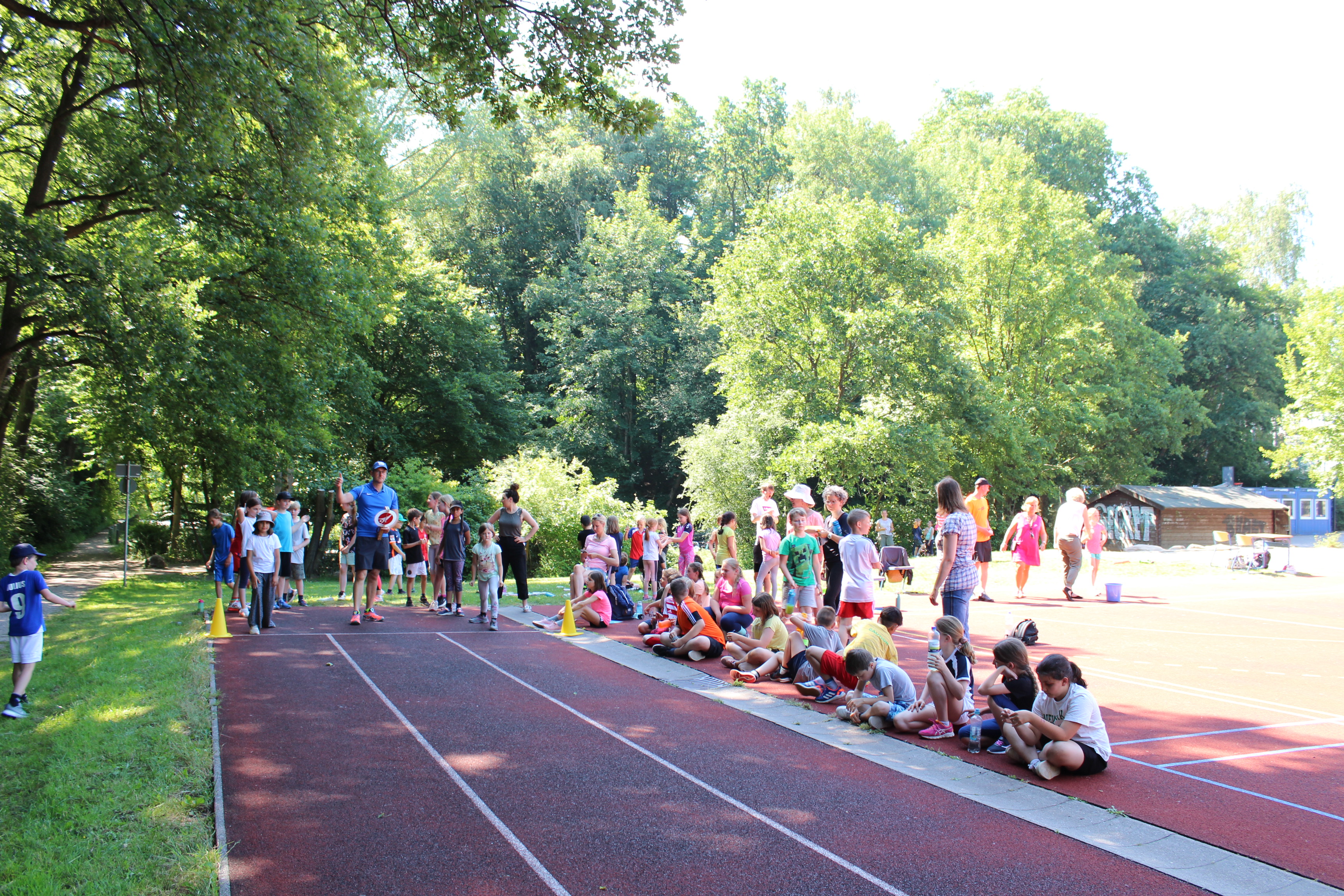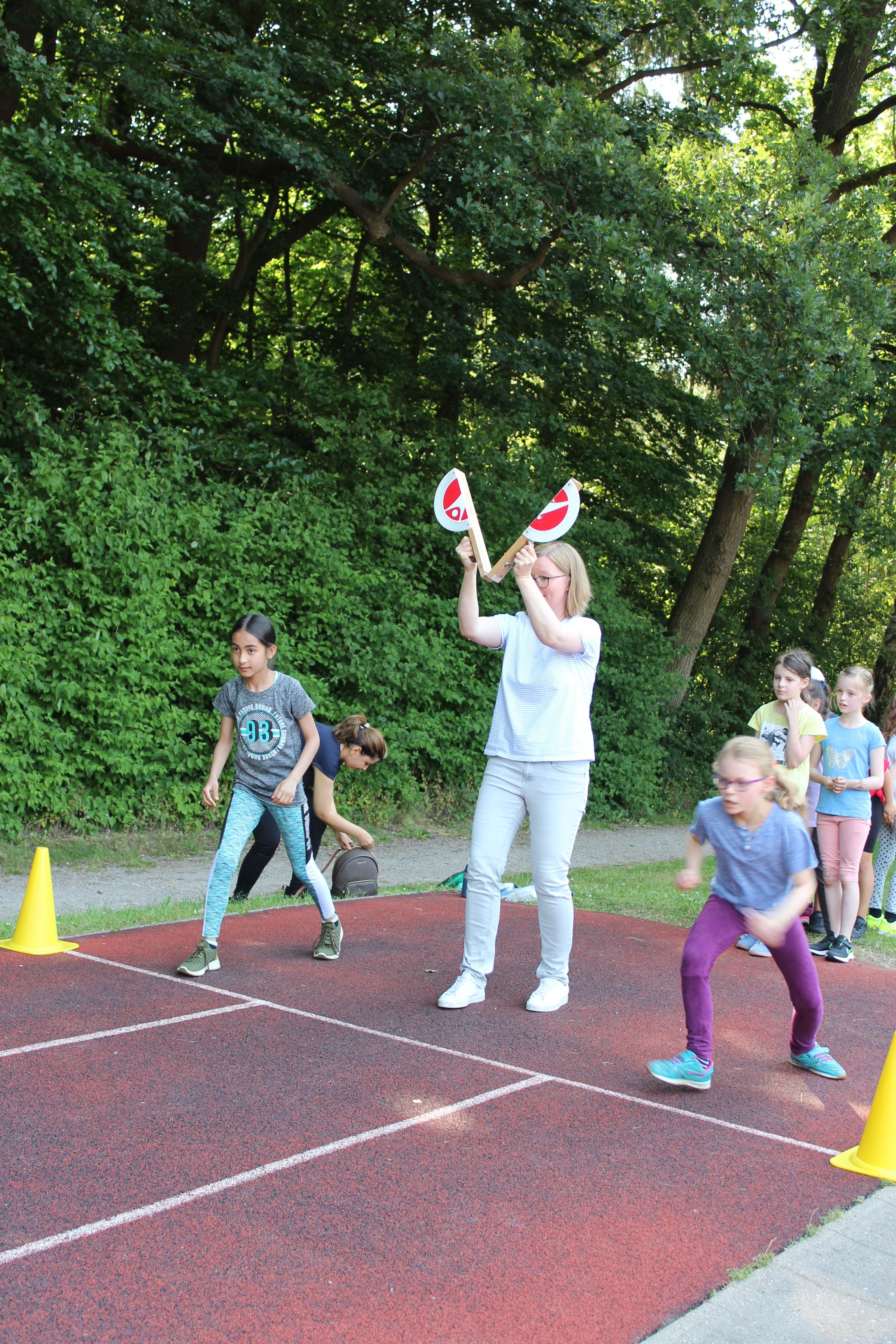 Am Freitag, 24.06. 2022, fand unser traditionelles Sport- und Spielefest statt. Nach langer Zeit waren in diesem Jahr darin die Wettkämpfe der Bundesjugendspiele in der Leichtathletik eingebettet. An zwei hochsommerlichen Tagen (23.6. – 800m-Lauf) wurde gesprintet, gesprungen und geworfen. Für das Gemeinsame in der Klasse konnten an 6 Spielstationen teambildende Spiele ausprobiert und durchgeführt werden. In allen Aktionsbereichen, in der Turnhalle, draußen auf dem Schulhof und dem Sportplatz begeisterten die Schülerinnen und Schüler mit Ehrgeiz beim Wettkampf und Spaß an den Spielen. Für die aktive Teilnahme erhielten alle Kinder eine Teilnehmer-, Sieger,- oder Ehrenurkunde. Ein Dankeschön gilt insbesondere den mehr als 25 Helferinnen und Helfern aus der Elternschaft, die Stationen betreuten und Klassen begleiteten.