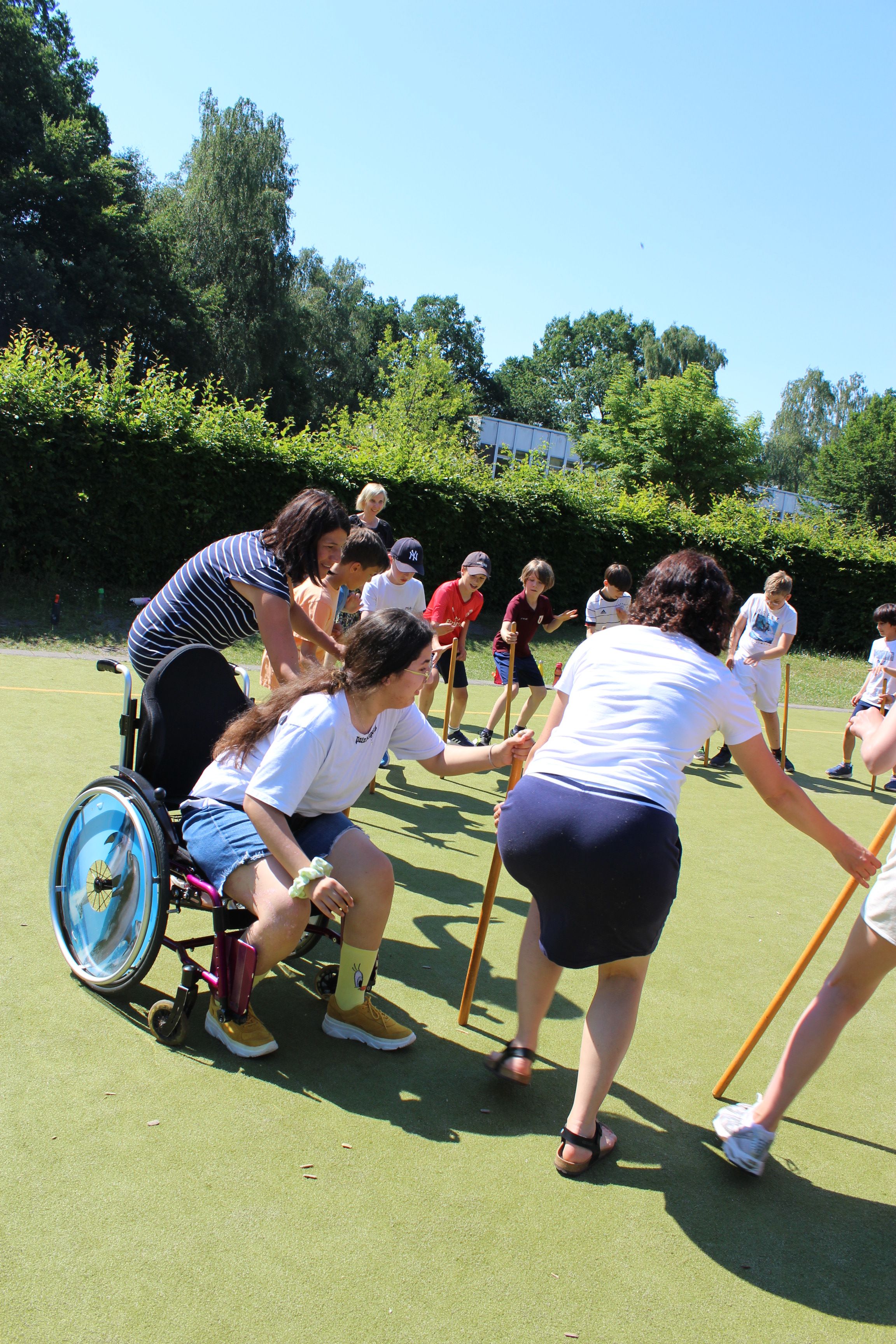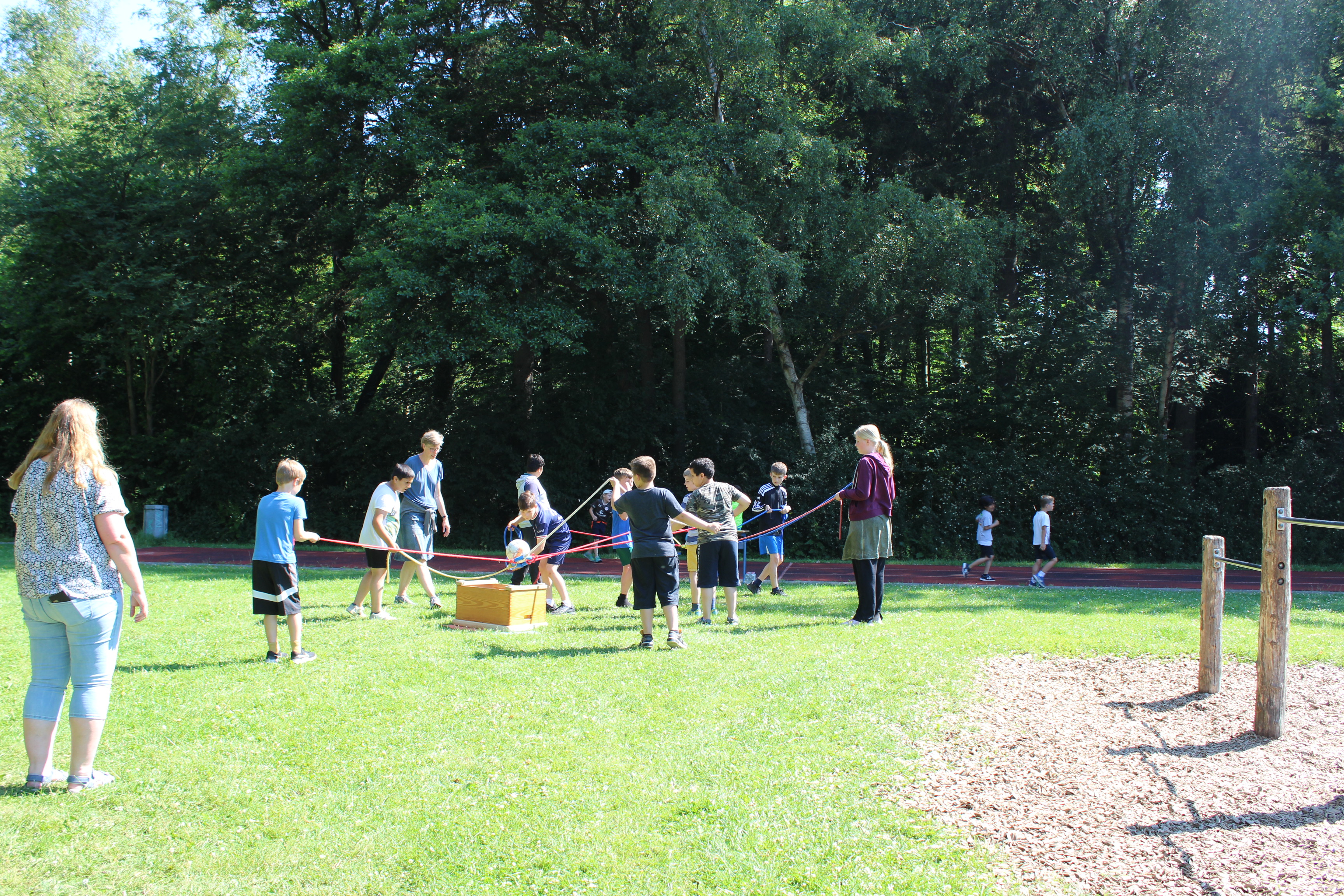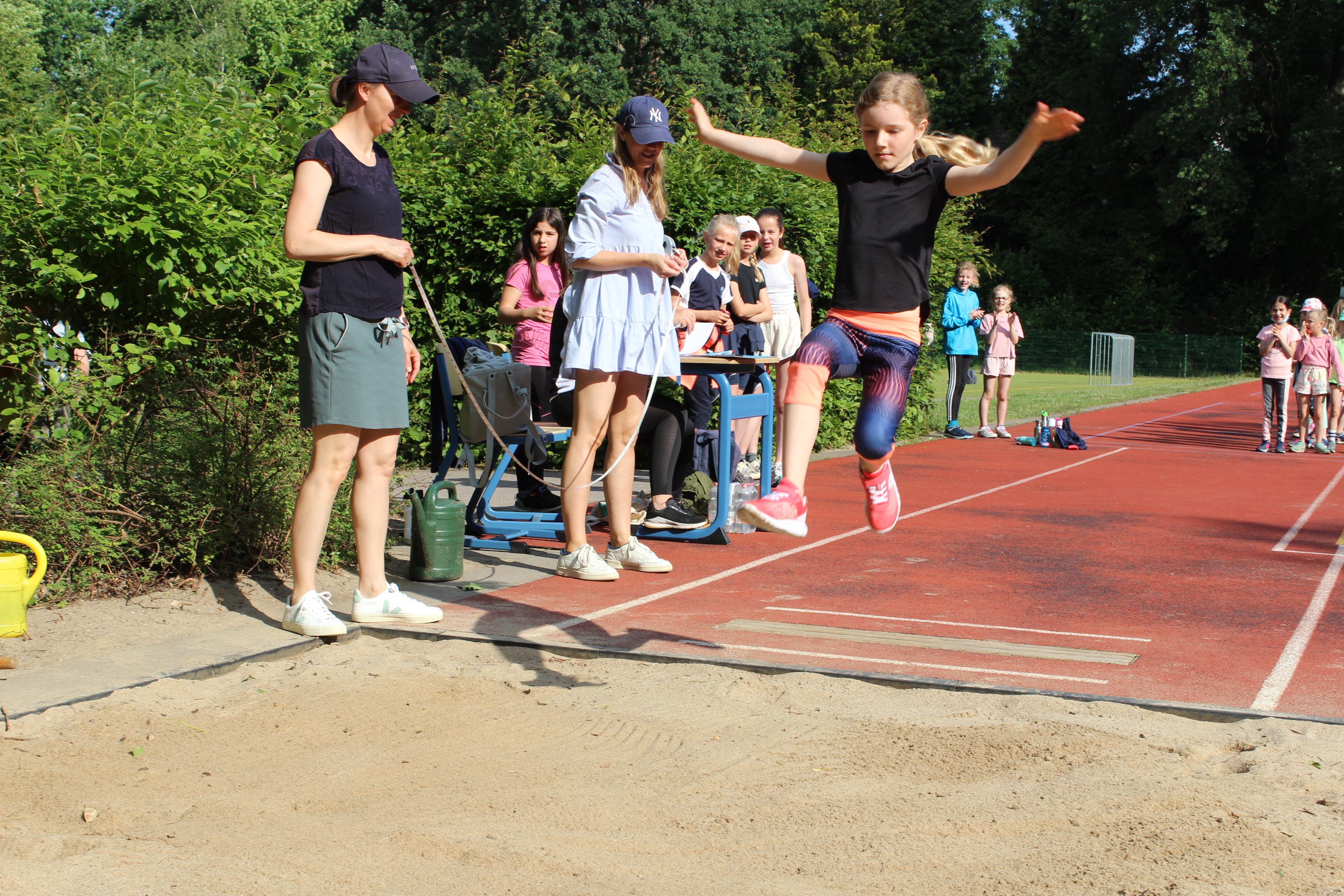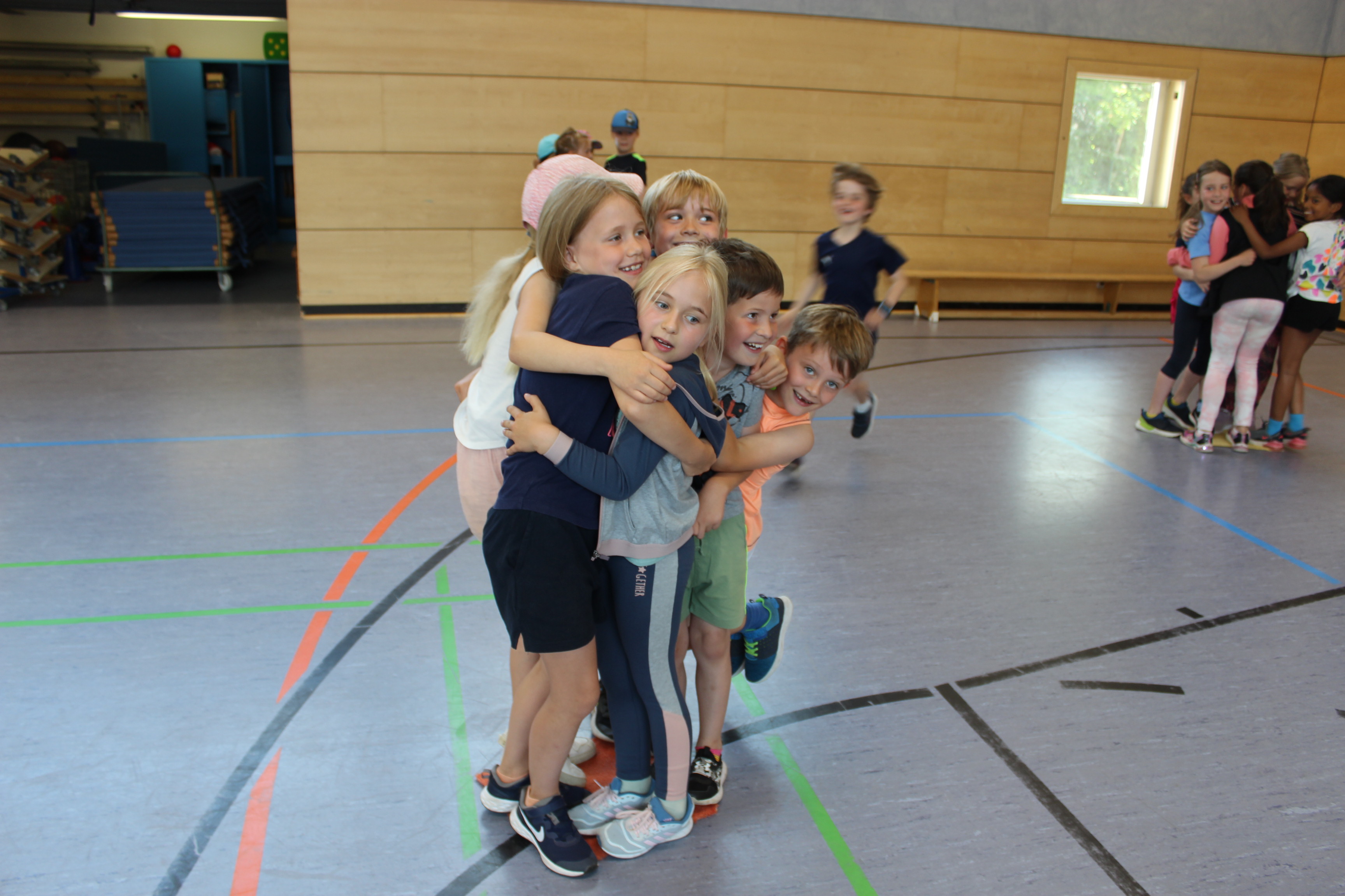 Am Freitag, 24.06. 2022, fand unser traditionelles Sport- und Spielefest statt. Nach langer Zeit waren in diesem Jahr darin die Wettkämpfe der Bundesjugendspiele in der Leichtathletik eingebettet. An zwei hochsommerlichen Tagen (23.6. – 800m-Lauf) wurde gesprintet, gesprungen und geworfen. Für das Gemeinsame in der Klasse konnten an 6 Spielstationen teambildende Spiele ausprobiert und durchgeführt werden. In allen Aktionsbereichen, in der Turnhalle, draußen auf dem Schulhof und dem Sportplatz begeisterten die Schülerinnen und Schüler mit Ehrgeiz beim Wettkampf und Spaß an den Spielen. Für die aktive Teilnahme erhielten alle Kinder eine Teilnehmer-, Sieger,- oder Ehrenurkunde. Ein Dankeschön gilt insbesondere den mehr als 25 Helferinnen und Helfern aus der Elternschaft, die Stationen betreuten und Klassen begleiteten.